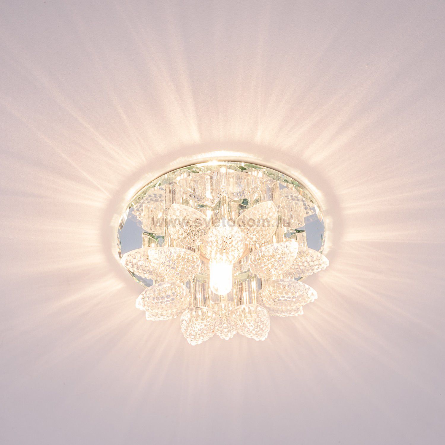 Точечный светильник F5013 WT+CL G4 от бренда ЭкономСвет. Каркас выполнен из материала стекло, цвет зеркальный. Цоколь G4 рассчитан на лампы максимальной мощности до 35 Вт, а максимальная площадь освещения составит до 2 м?.