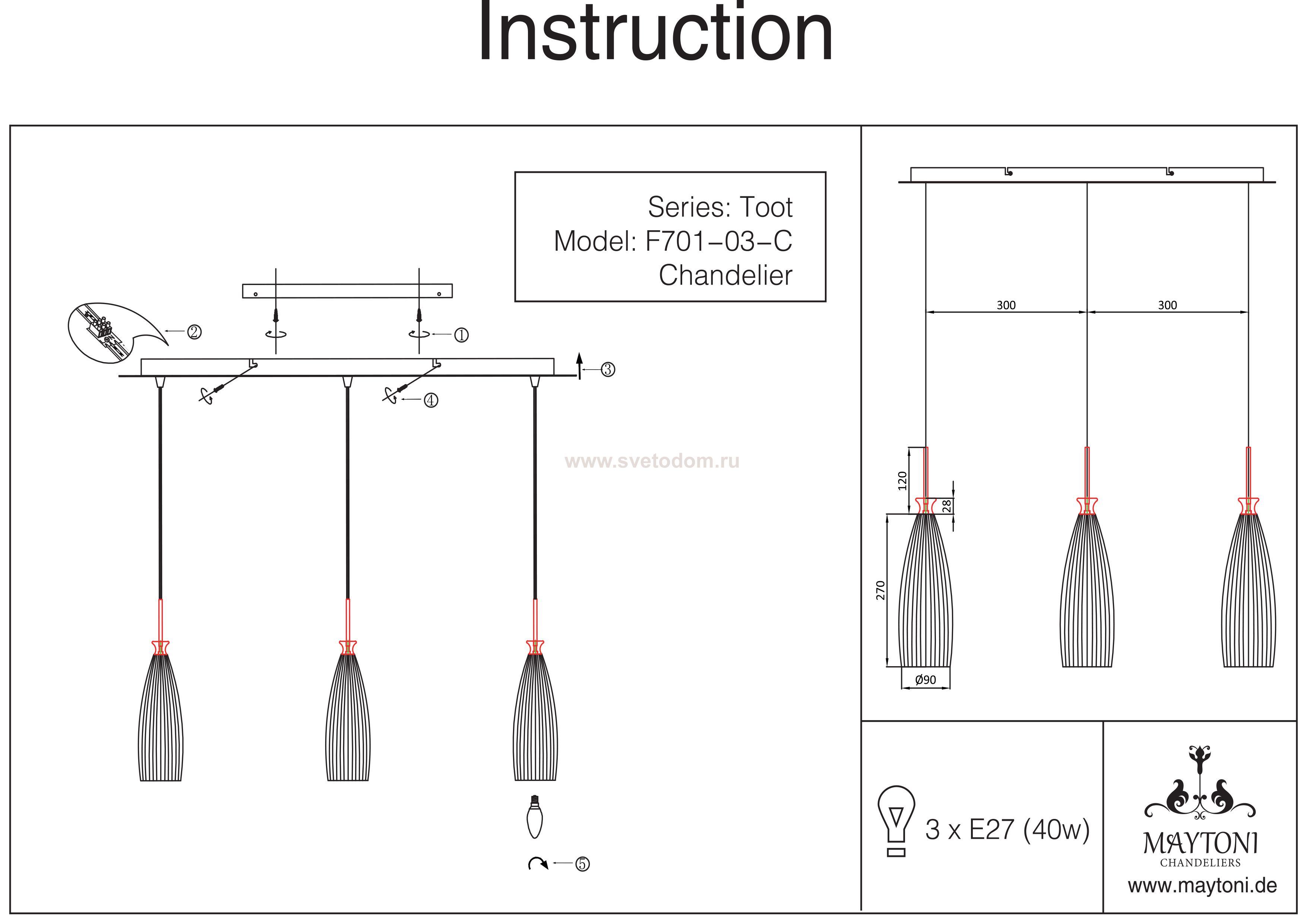 Подвесной светильник – это универсальный вариант, подходящий для любой комнаты. Сегодня производители предлагают огромный выбор таких моделей по самым разным ценам. В каталоге интернет-магазина «Светодом» мы собрали большое количество интересных и оригинальных светильников по выгодной стоимости. Вы можете приобрести их в Москве, Екатеринбурге и любом другом городе России. Подвесной светильник Maytoni F701-03-C сразу же привлечет внимание Ваших гостей благодаря стильному исполнению. Благородный дизайн позволит использовать эту модель практически в любом интерьере. Она обеспечит достаточно света и при этом легко монтируется. Чтобы купить подвесной светильник Maytoni F701-03-C, воспользуйтесь формой на нашем сайте или позвоните менеджерам интернет-магазина. |