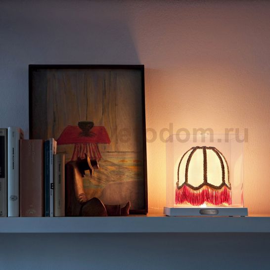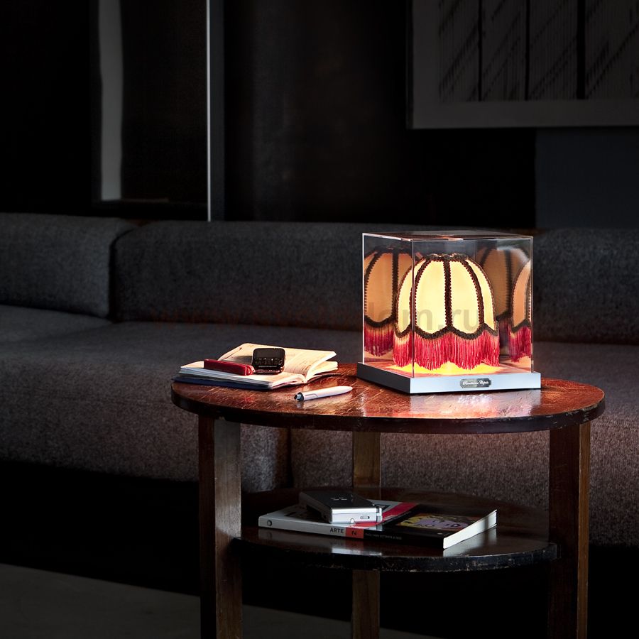 Настольная лампа в виде абажура, помещенная в прозрачный короб