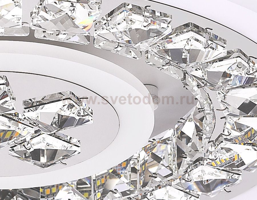 Потолочный светодиодный светильник из серии ACRYLICA, коллекция Ice. Великолепная модель FA153 выполнена в современном стиле Неоклассика. Бесподобный хрустальный декор придает особый шик светильникам этой коллекции. Эта модель круглой формы, белого цвета, с окантовкой из акрила и металлического корпуса. Благодаря встроенным в конструкцию светодиодам, вы можете с уверенностью забыть о поиске или замене дополнительных ламп. С помощью мобильного приложения, а так же радиоуправляемого пульта вы сможете регулировать цветовую температуру, яркость освещения и ночной режим. Модель FA153 подходит для натяжных потолков и будет прекрасным дополнением в гостиной, спальне или детской комнате.