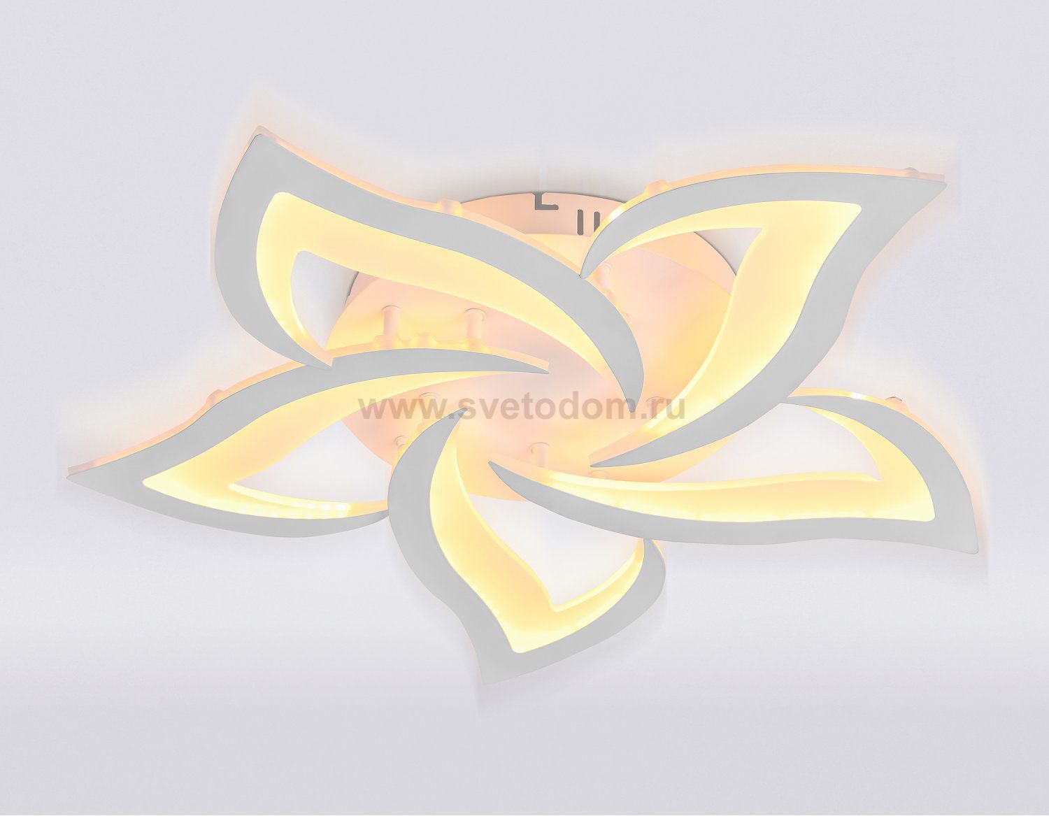 Современный потолочный светодиодный светильник, коллекция ACRYLICA. Модель FA4171 представлена в современном стиле Неоклассика. Светильник выполнен в белом цвете, цветочной формы, состоит из 5 акриловых плафонов на металлическом каркасе. Эта модель оснащена встроенными светодиодами, благодаря чему вы забудете о замене дополнительных ламп. Так же с помощью инфракрасного пульта вы сможете регулировать цветовую температуру, яркость освещения и ночной режим. Данная модель подходит для натяжных потолков и будет прекрасным дополнением в любом помещении.
