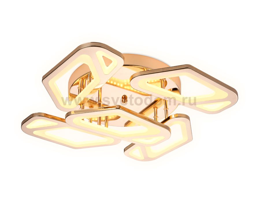 Потолочный светодиодный светильник из серии ACRYLICA, коллекция Original. Утонченная модель FA589 выполнена в стиле хай-тек. Светильник представлен в необычной форме, золотого цвета, изготовлен из металлического корпуса и акрила. С помощью радиоуправляемого пульта вы сможете регулировать цветовую температуру, яркость освещения и ночной режим. Эта модель идеально подходит для натяжных потолков и будет прекрасным дополнением в гостиной, спальне или детской комнате.