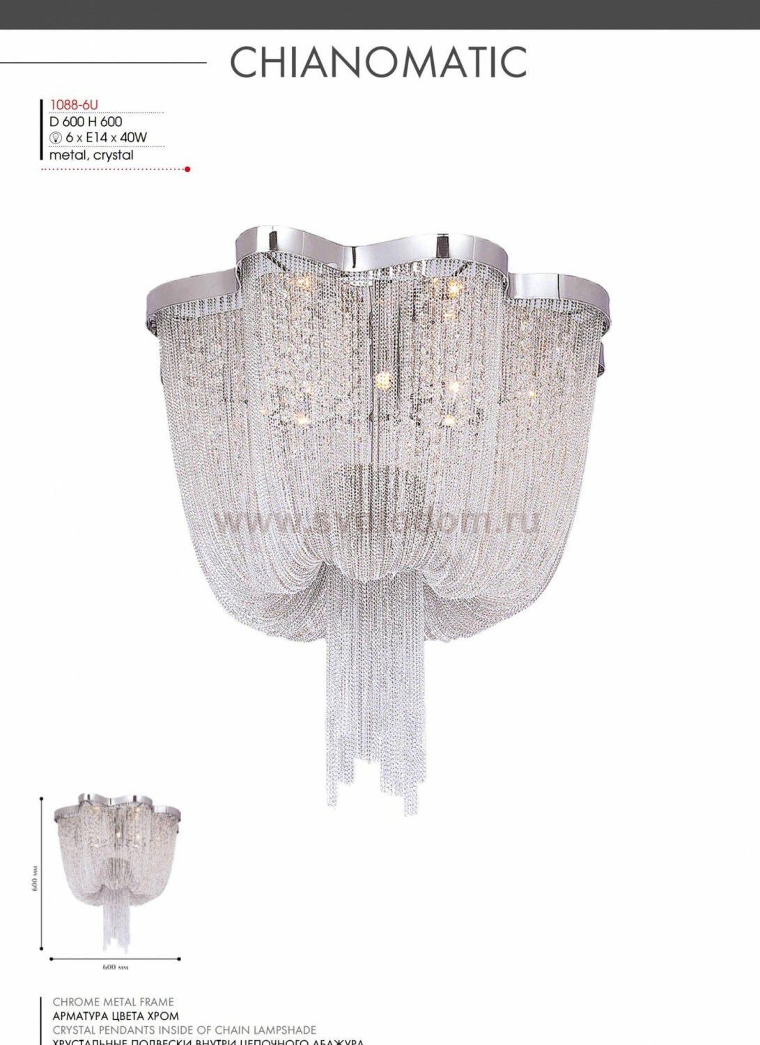 хром, хрусталь высшего качества Материал плафона