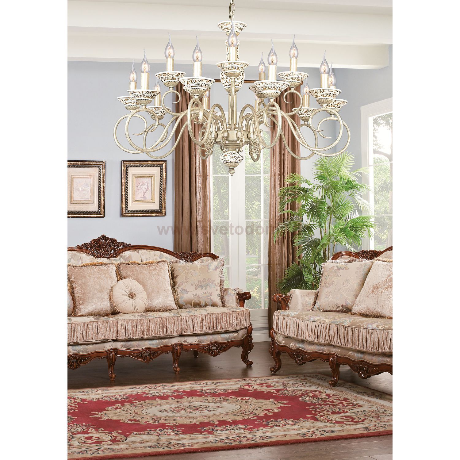 Красота и роскошь подвесной люстры Favourite 1141-15р покоряют с первого взгляда! Выполненная в виде большого, нарядного подсвечника, она станет настоящим украшением интерьера в стиле «классика» или «рустика». Каждая из пятнадцати лампочек – «свечек» расположена на отдельном «завитке» арматуры, а на «блюдцах» нанесен изящный гипсовый орнамент. Расположение плафонов на разных высотах не только создает привлекательный, «парадный» внешний эффект, но и является функциональным, т.к. освещение получается ярким и насыщенным по всей площади помещения до 50 кв.м. Белый оттенок придает конструкции «воздушность» и «легкость», и идеально смотрится в любой цветовой гамме комнаты. В качестве подсветки используйте комплект настенных бра из этой же серии, чтобы интерьер стал уютным, гармоничным и совершенным. |