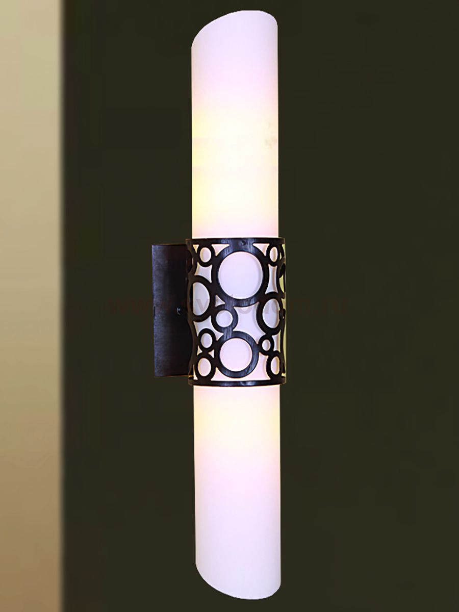 Каркас окрашен в коричневый цвет, настенный светильник со стеклянным плафоном. Материал плафона
