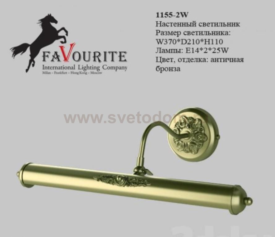 Светильник бра Favourite 1155-2w сделает Ваш интерьер современным, стильным и запоминающимся! Наиболее функционально и эстетически привлекательно модель будет смотреться в гостиной, зале, холле или другой комнате. А в комплекте с люстрой и торшером из этой же коллекции сделает интерьер по-дизайнерски профессиональным и законченным. |