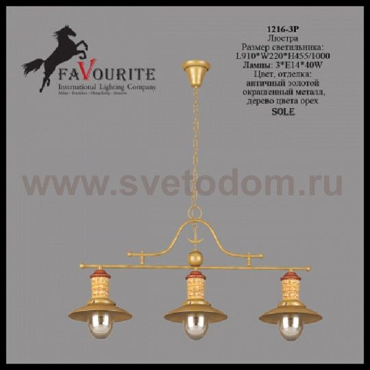 225 Отзывы Светильник подвесной Favourite 1216-3P SoleПока нет отзывов об этом товаре, напишите и он обязательно появится после модерации! Оставить свой отзывПохожие товары Другие товары магазина Фото