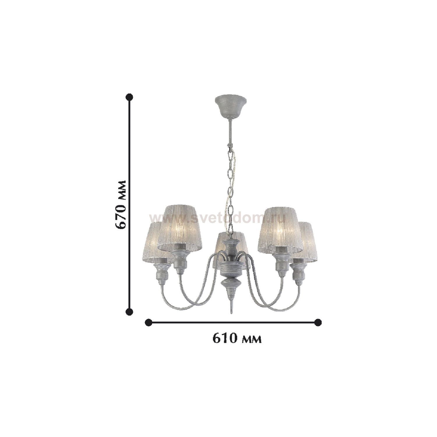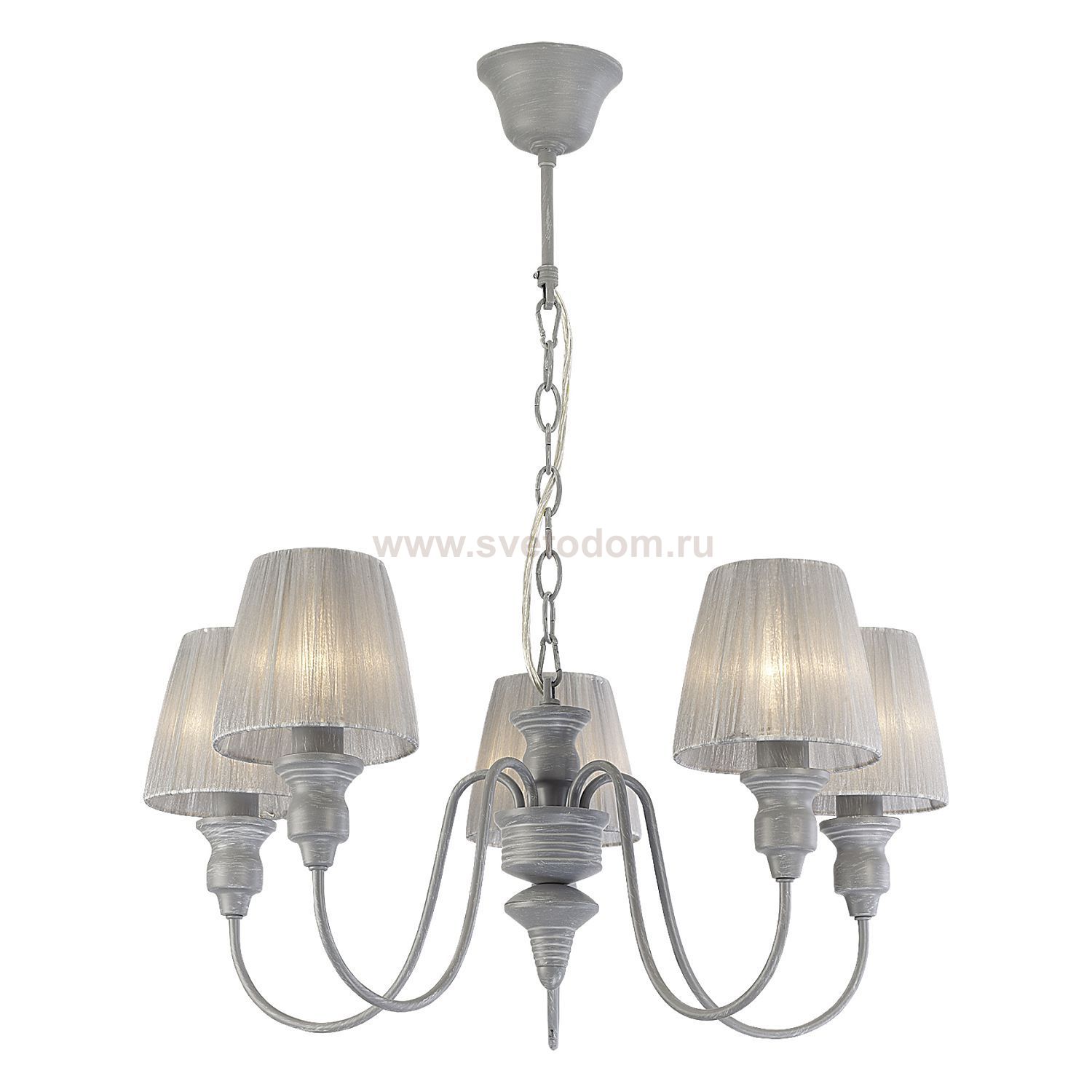 Коллекция Mirage выполнена в редком скандинавском сером цвете с белой патиной. Цвет ткани абажуров подобран в тон каркасу - нежно-серая органза. Материал плафона