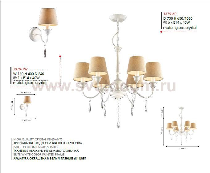 металл белый, абажуры рогожка, хрусталь Комментарий