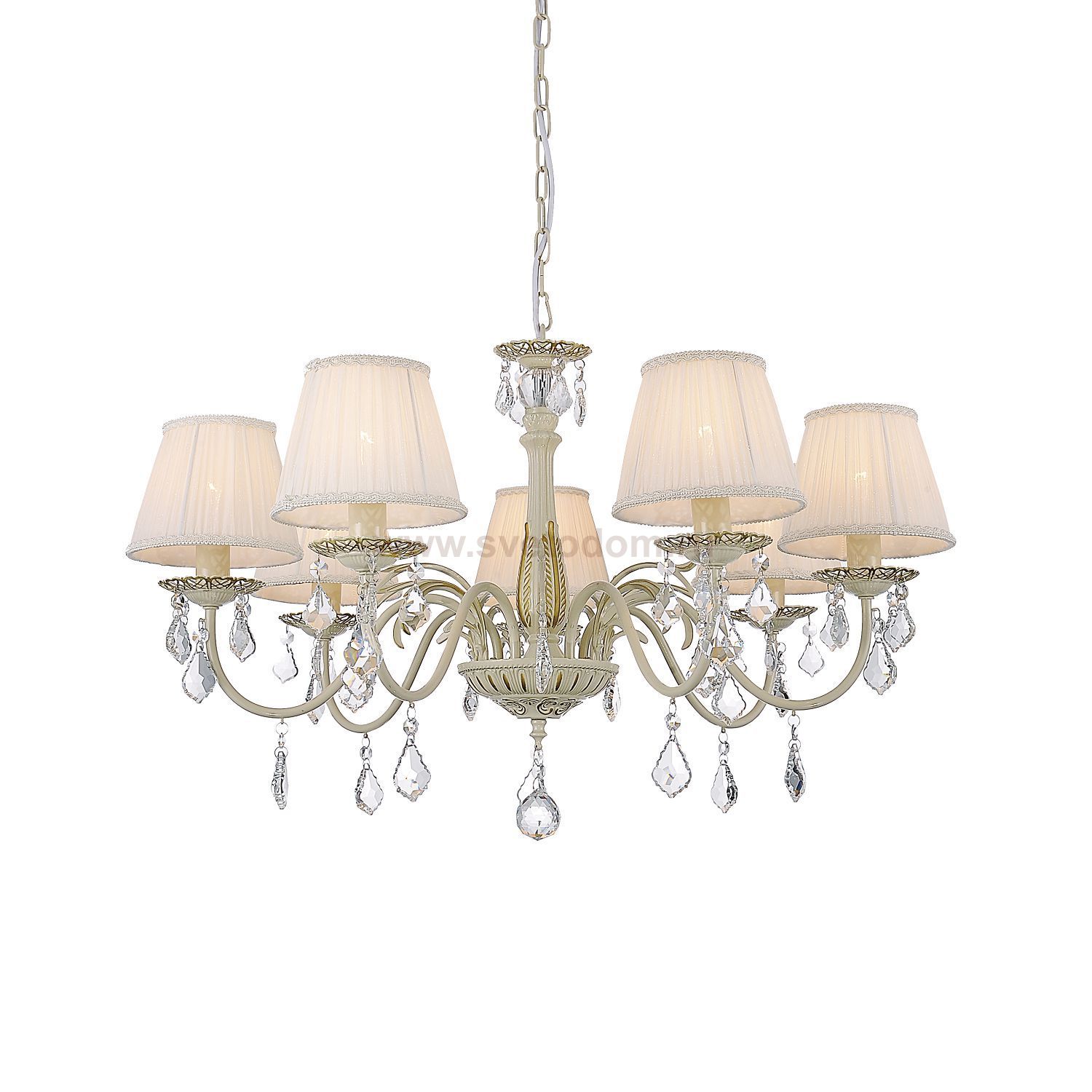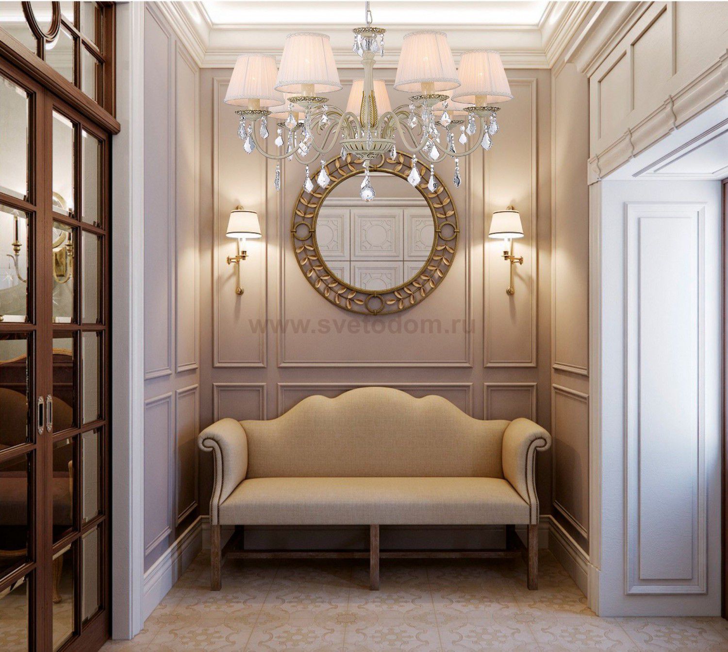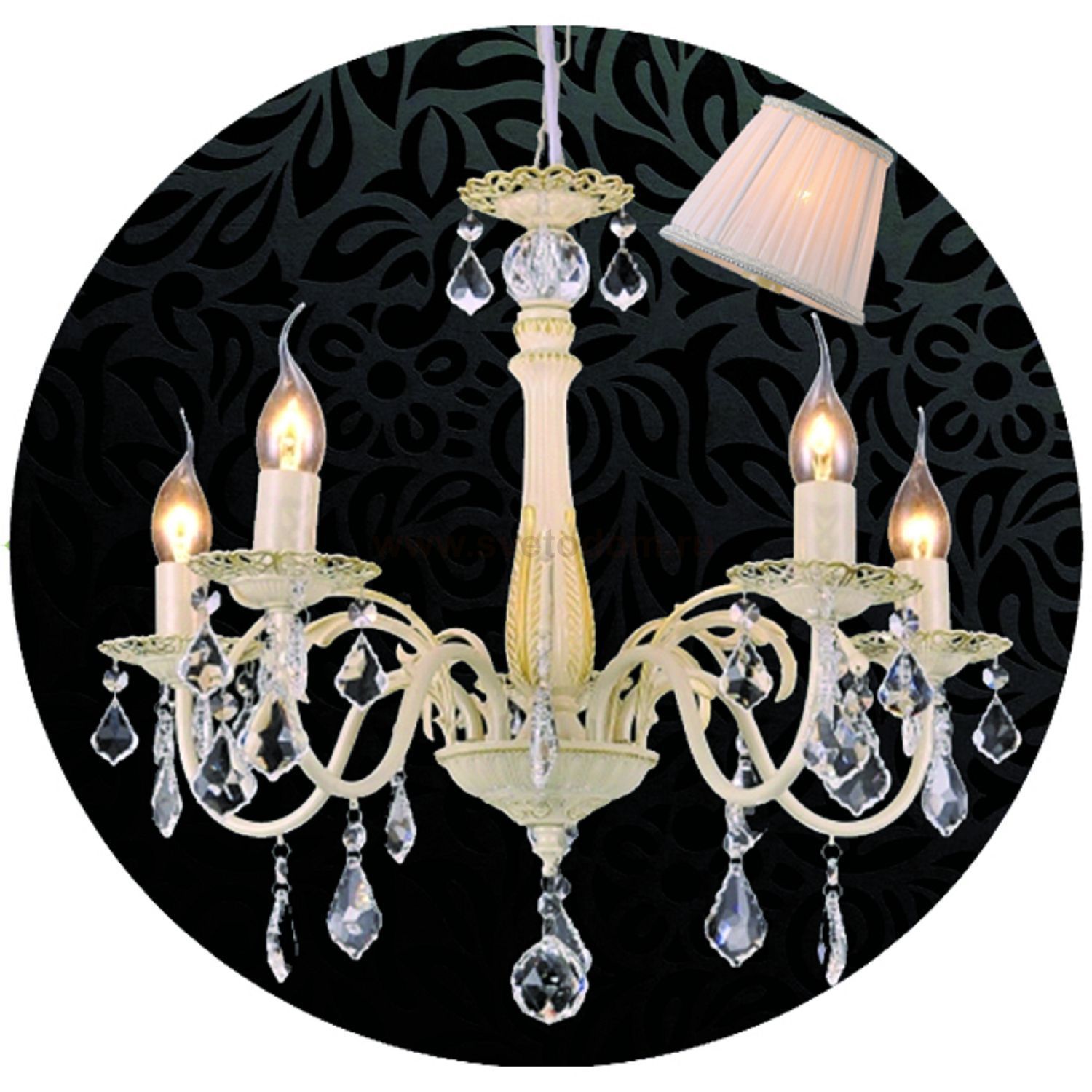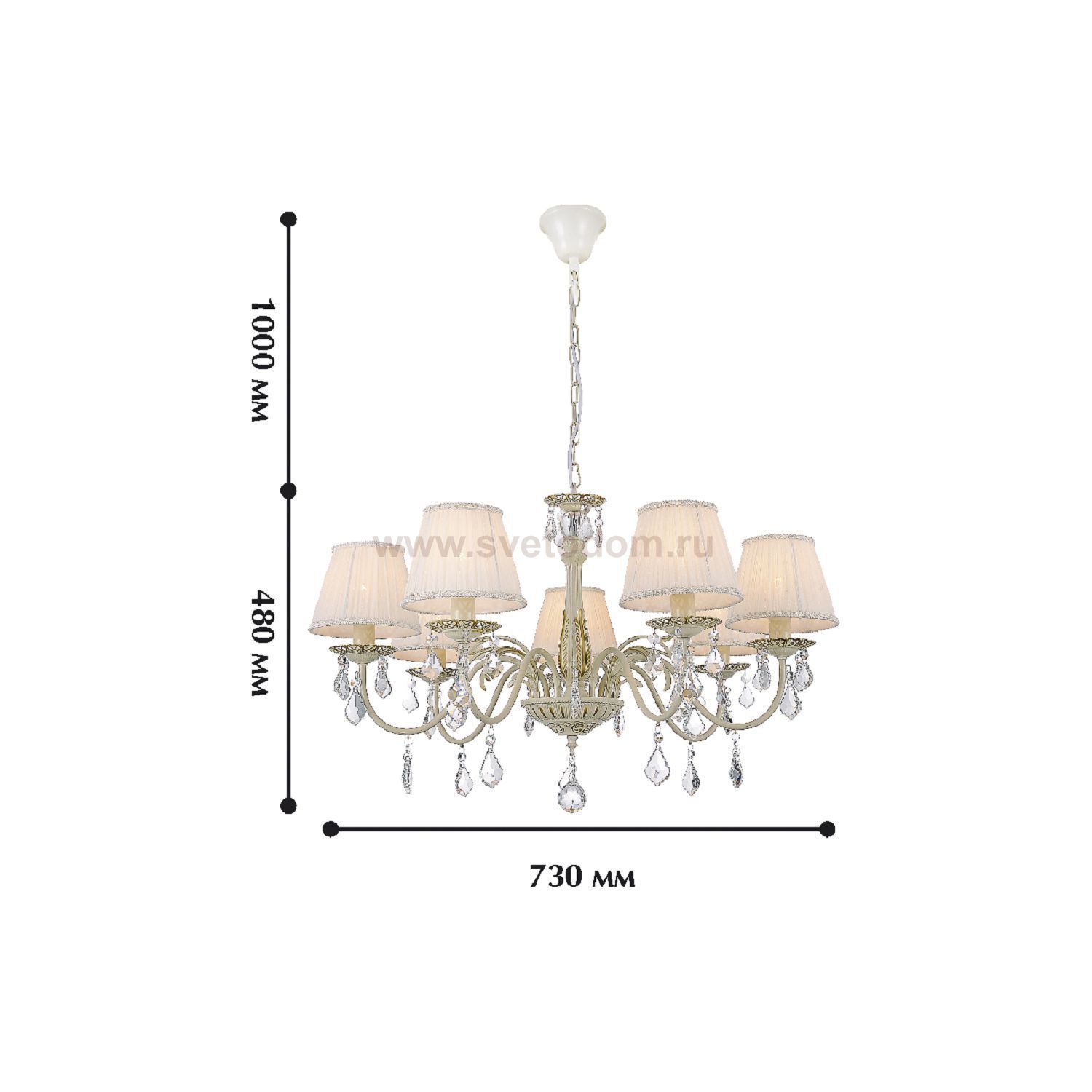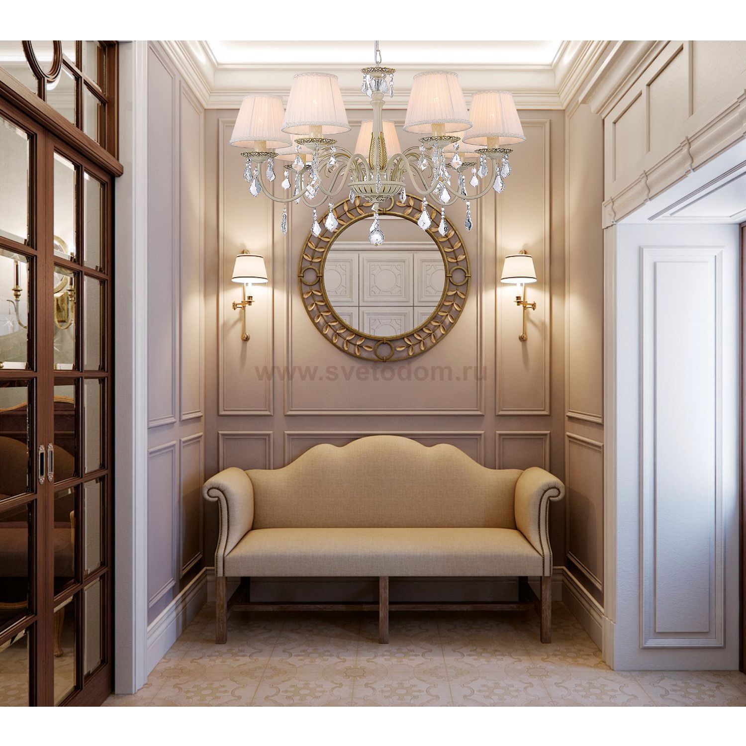металл слоновая кость окрашенный с золотыми штрихами, абажуры из белой ткани съемные, хрусталь высшего качества Комментарий