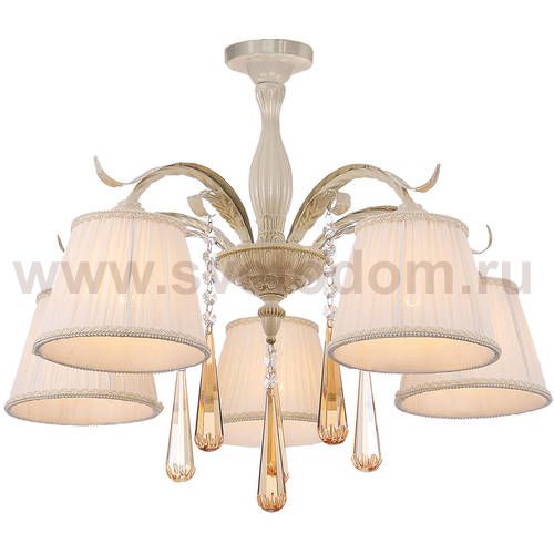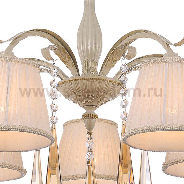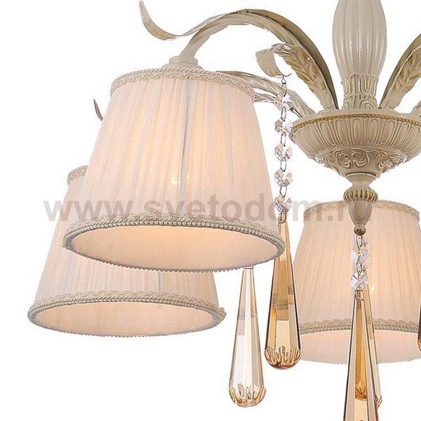 металл слоновая кость окрашенный с золотыми штрихами, абажуры из белой ткани, хрусталь цвета шампанского, высшего качества Комментарий