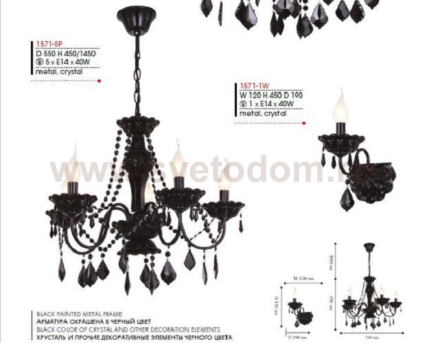 хрусталь черный, металл черный окрашенный Поверхность арматуры