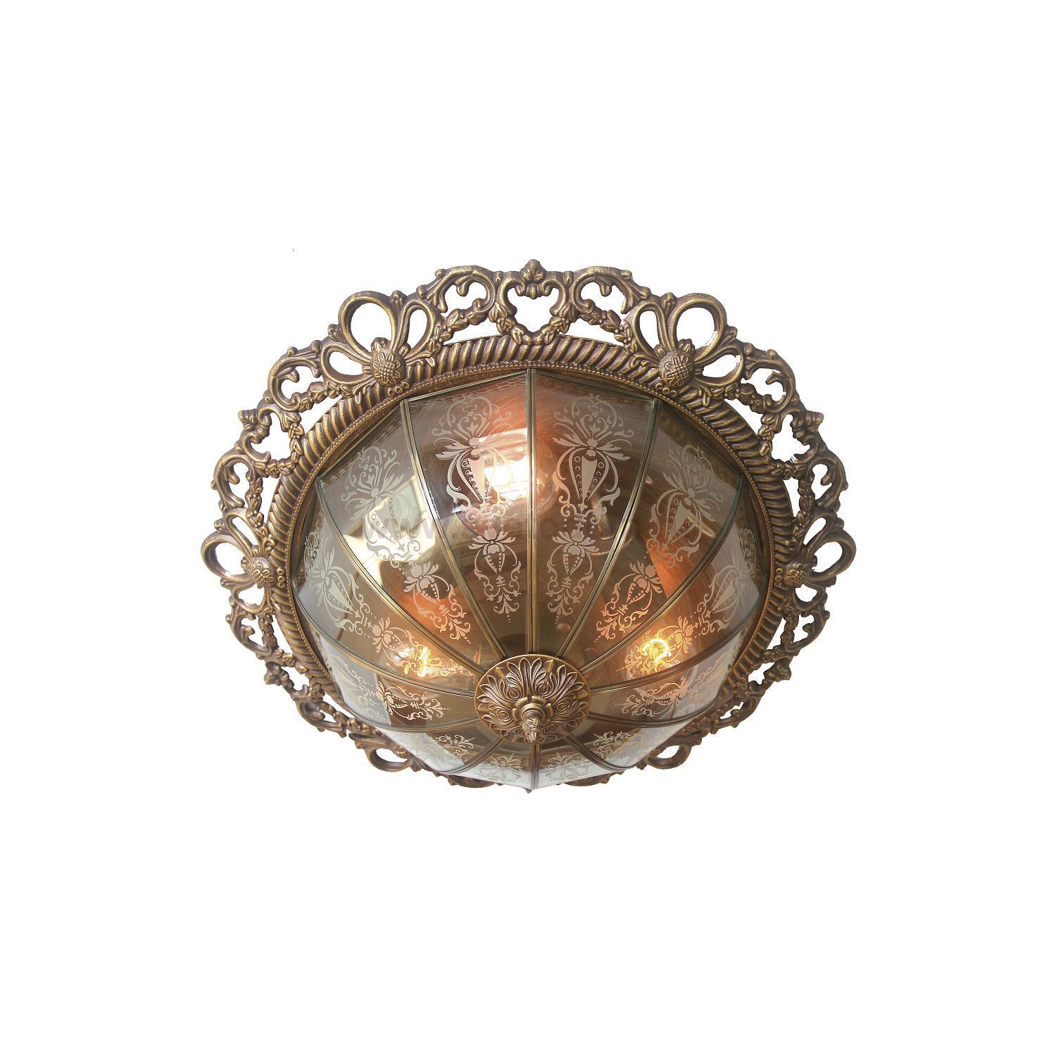 металл коричневого цвета, инкрустированное прозрачное стекло с белым узором Комментарий