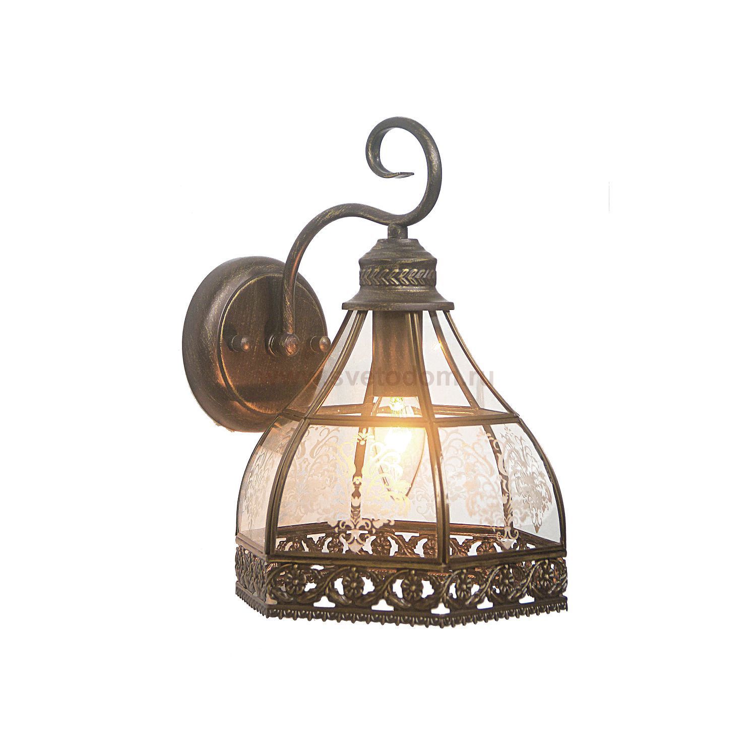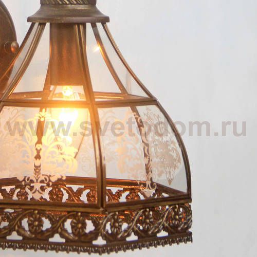 металл коричневого цвета, инкрустированное прозрачное стекло с белым узором Материал плафона