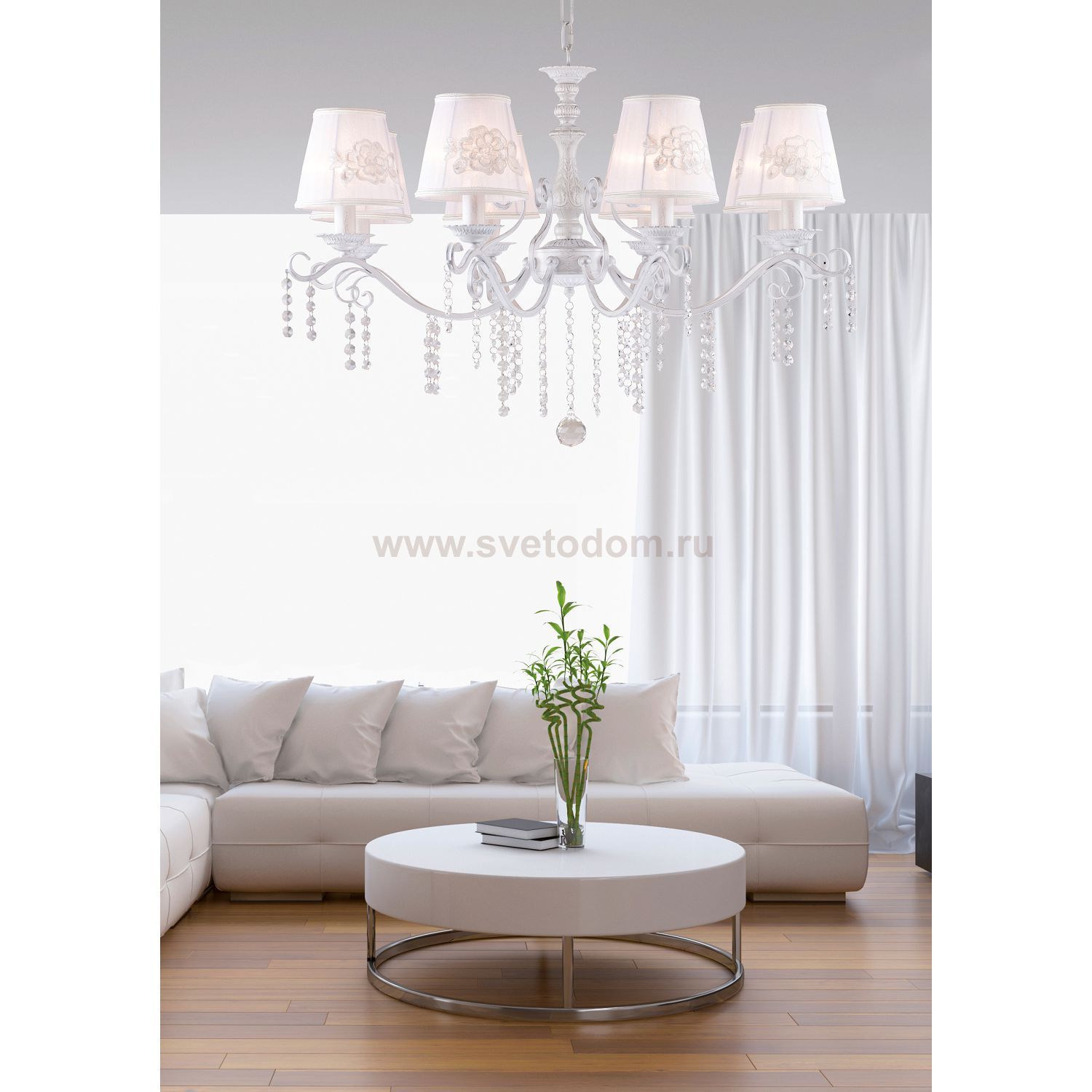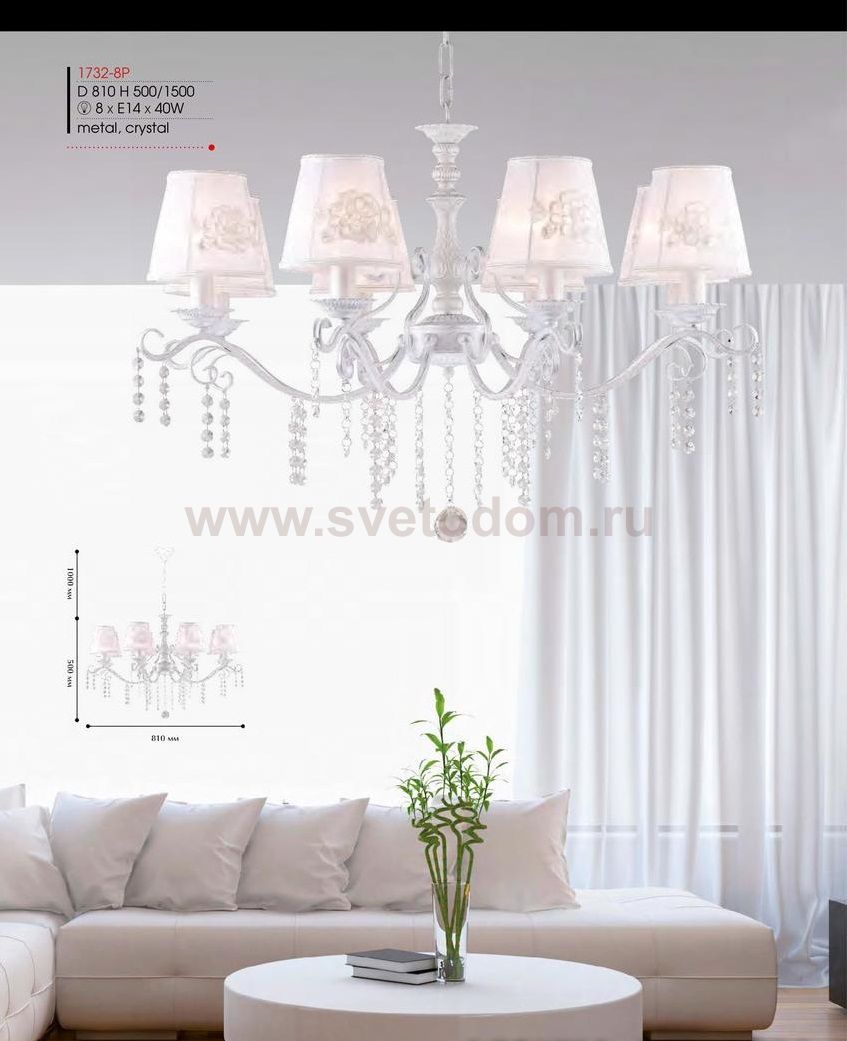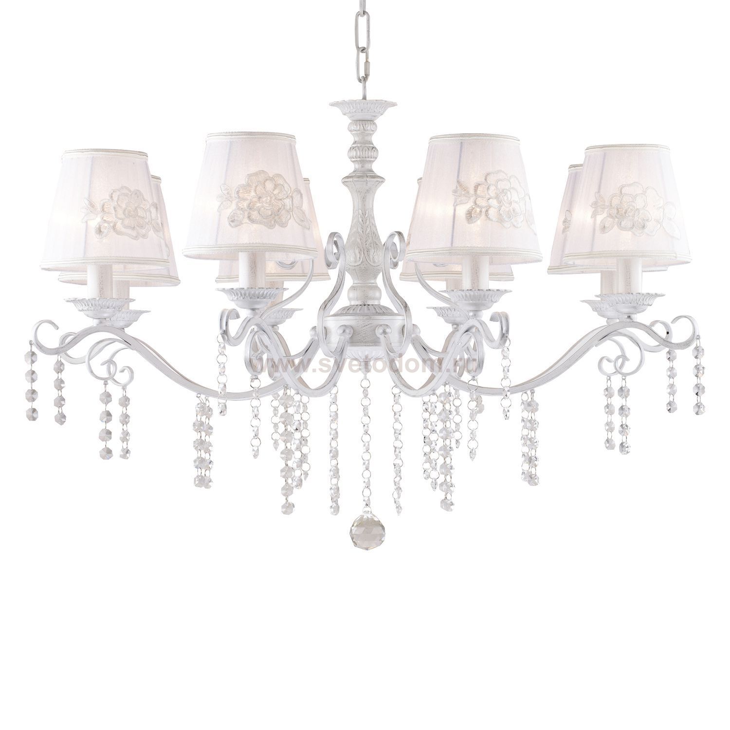 Выбирая модель светильника Favourite 1732-8P, обратите внимание, что каркас окрашен в белый цвет с серебряной патиной, абажур из белой ткани украшен декоративной аппликацией в виде цветочного кружева, хрустальные подвески высшего качества. Дополнительная информация в характеристиках или по телефону. |