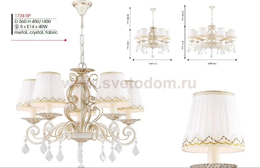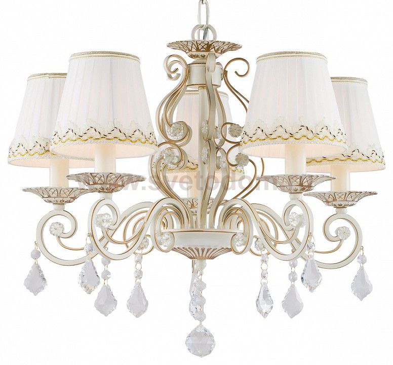Выбирая модель светильника Favourite 1734-5P, обратите внимание, что каркас окрашен в цвет слоновой кости с позолотой, абажур из белой ткани украшен тесьмой с золотистым узором, хрустальные подвески высшего качества. Дополнительная информация в характеристиках или по телефону. |