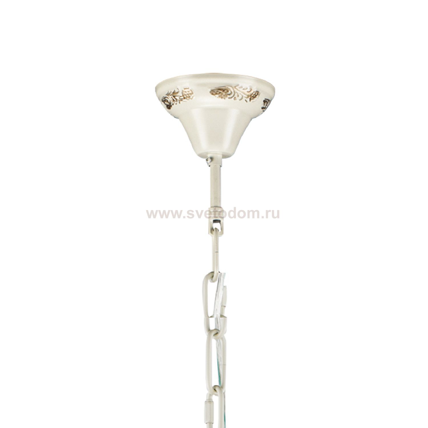 каркас окрашен в цвет слоновой кости с позолотой, абажур из белой ткани украшен тесьмой с золотистым узором, хрустальные подвески высшего качества Штрих-код