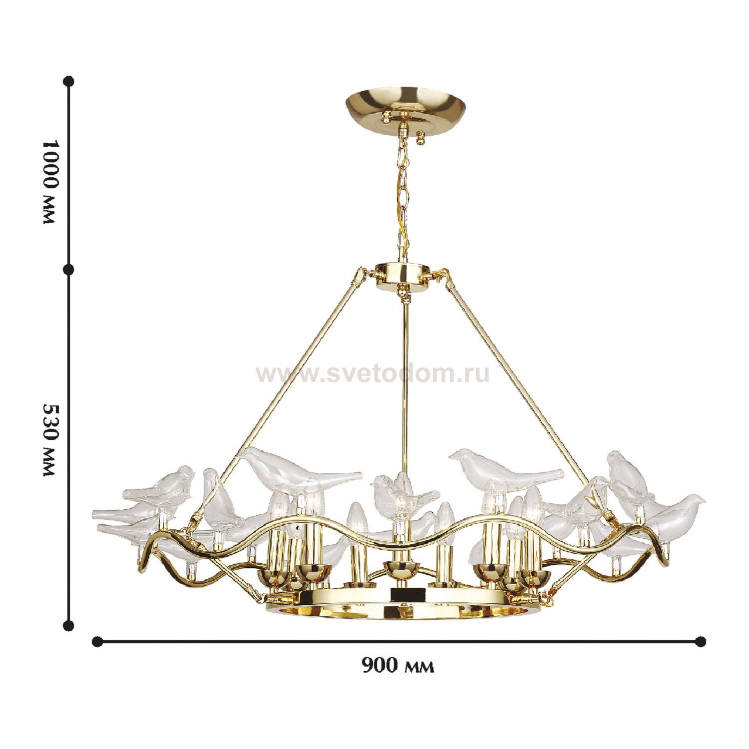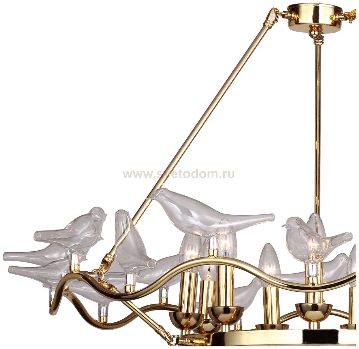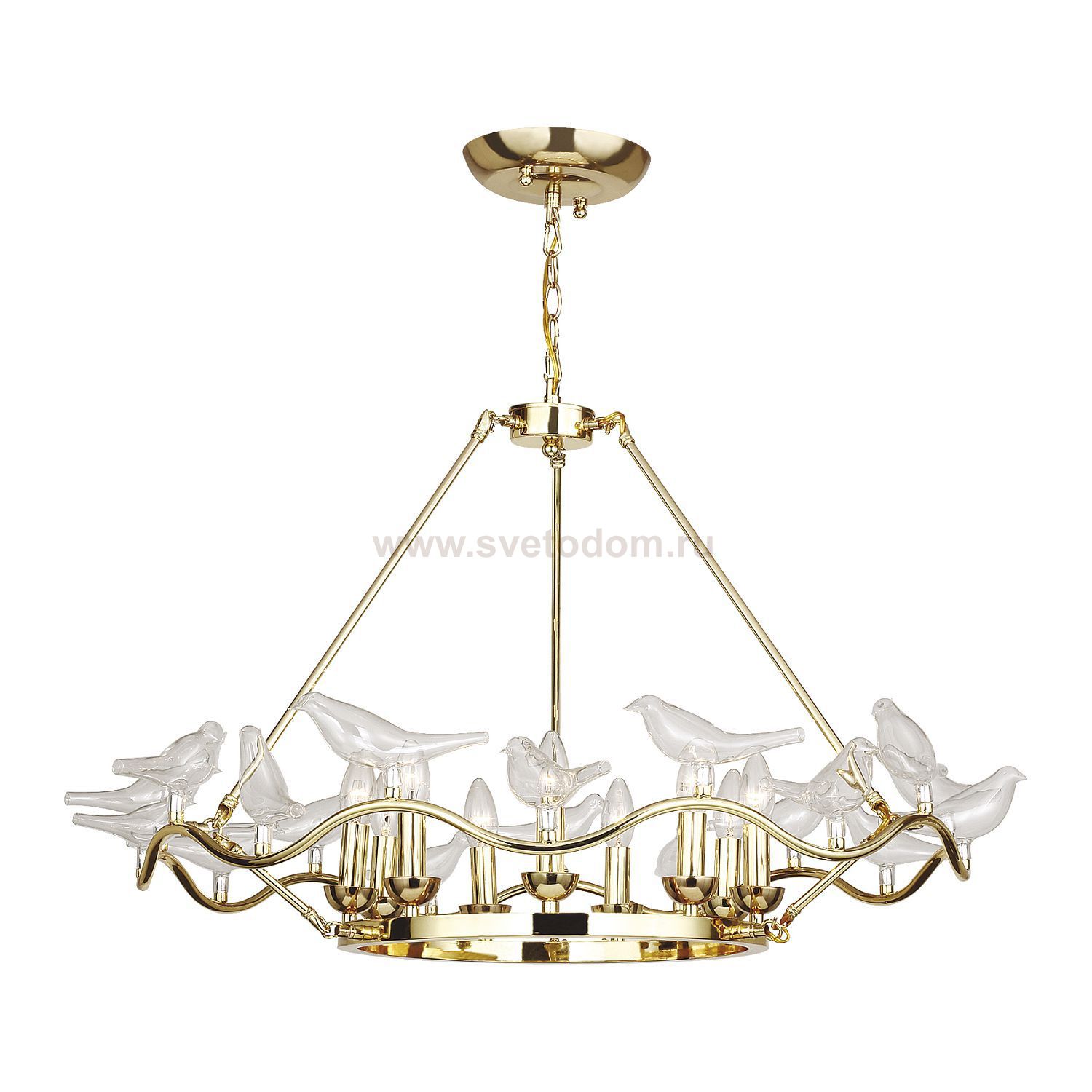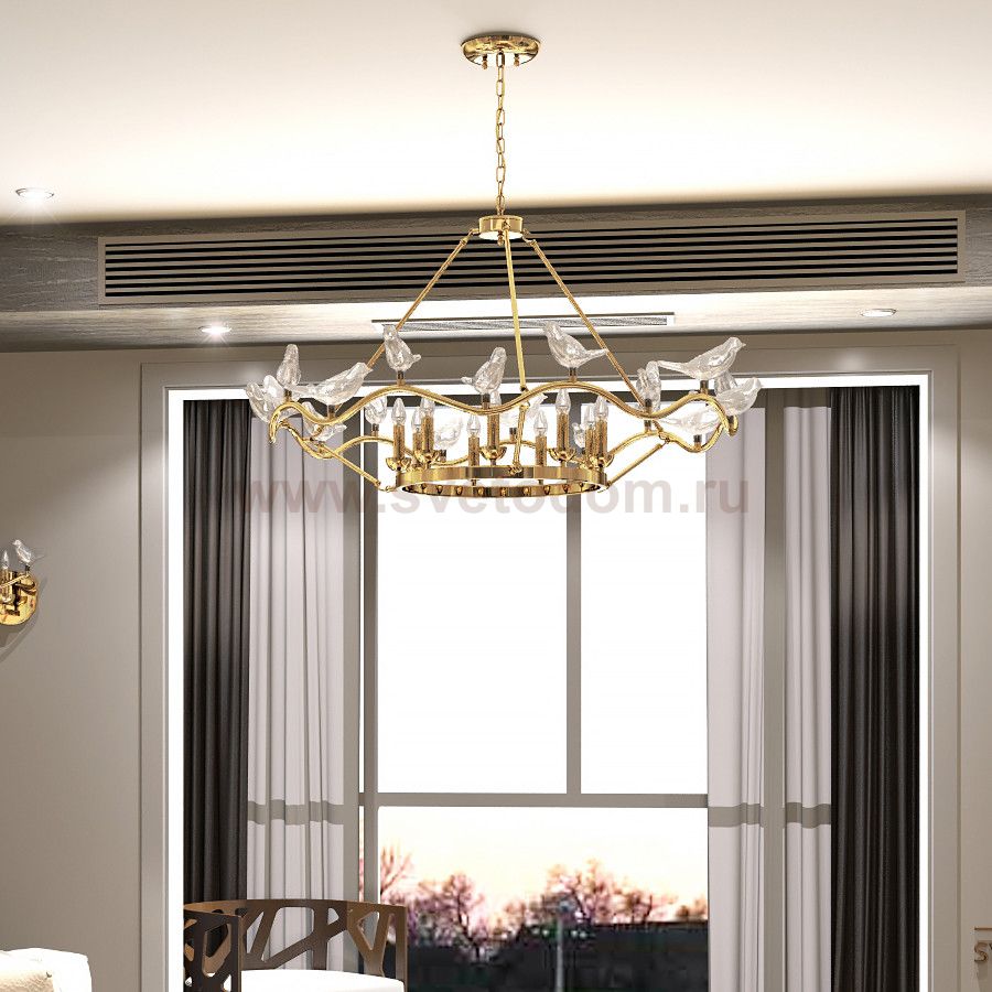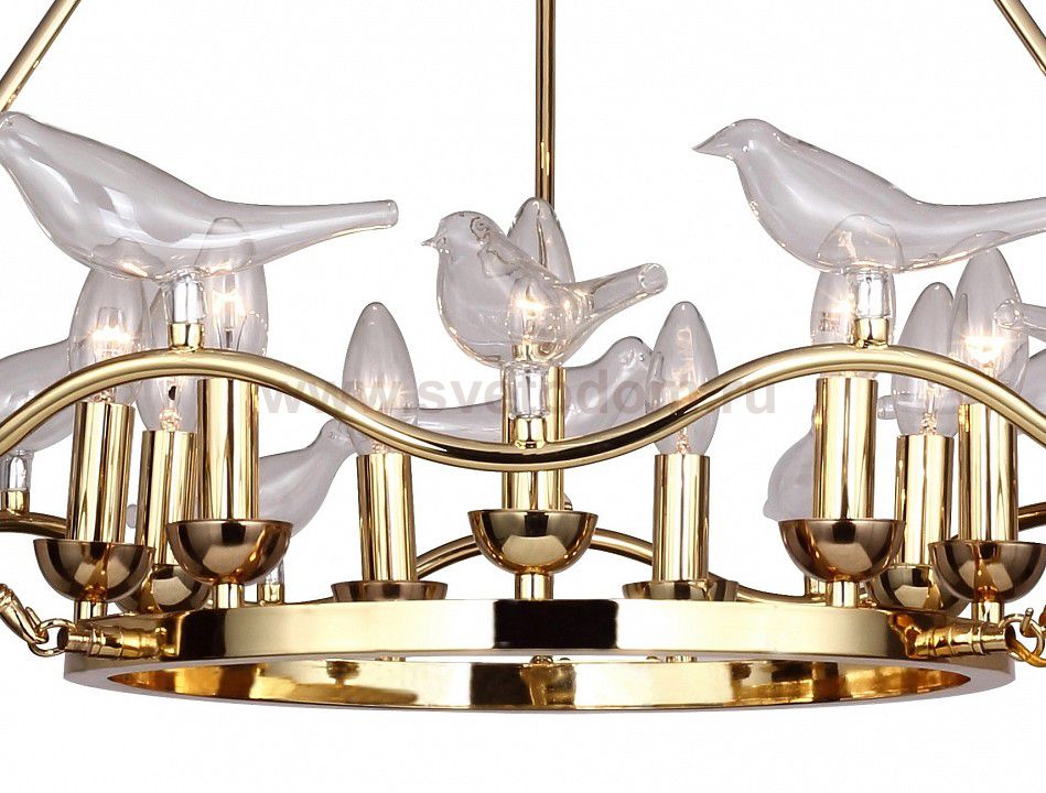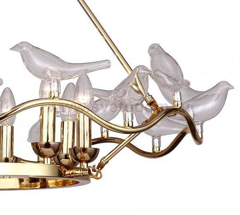 арматура золотого цвета, декоративные птички из выдувного стекла Материал плафона