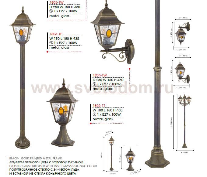металл, цвет черный с золотой патиной и прозрачное и янтарное стекло Место применения