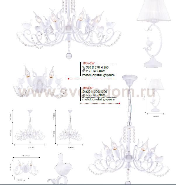 Выбирая модель светильника Favourite 1836-5P, обратите внимание, что каркас белого цвета, декоративные птички из гипса, хрусталь высшего качества. Дополнительная информация в характеристиках или по телефону. |