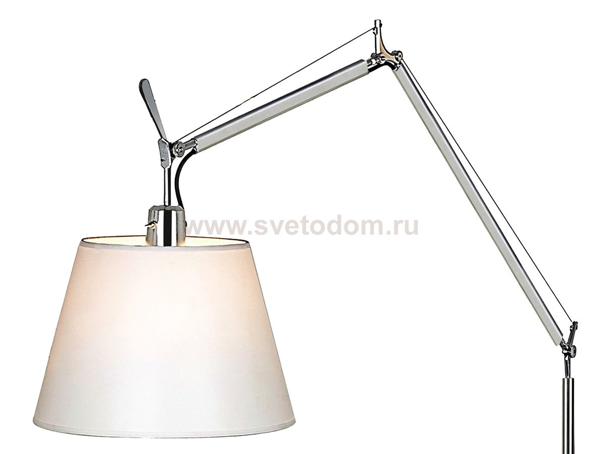металл окрашен в серебряный цвет, абажур из белой ткани, трехступенчатая система сгибания основания Материал плафона
