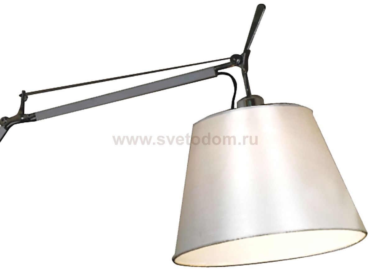 металл окрашен в серебряный цвет, абажур из белой ткани, трехступенчатая система сгибания основания Материал плафона