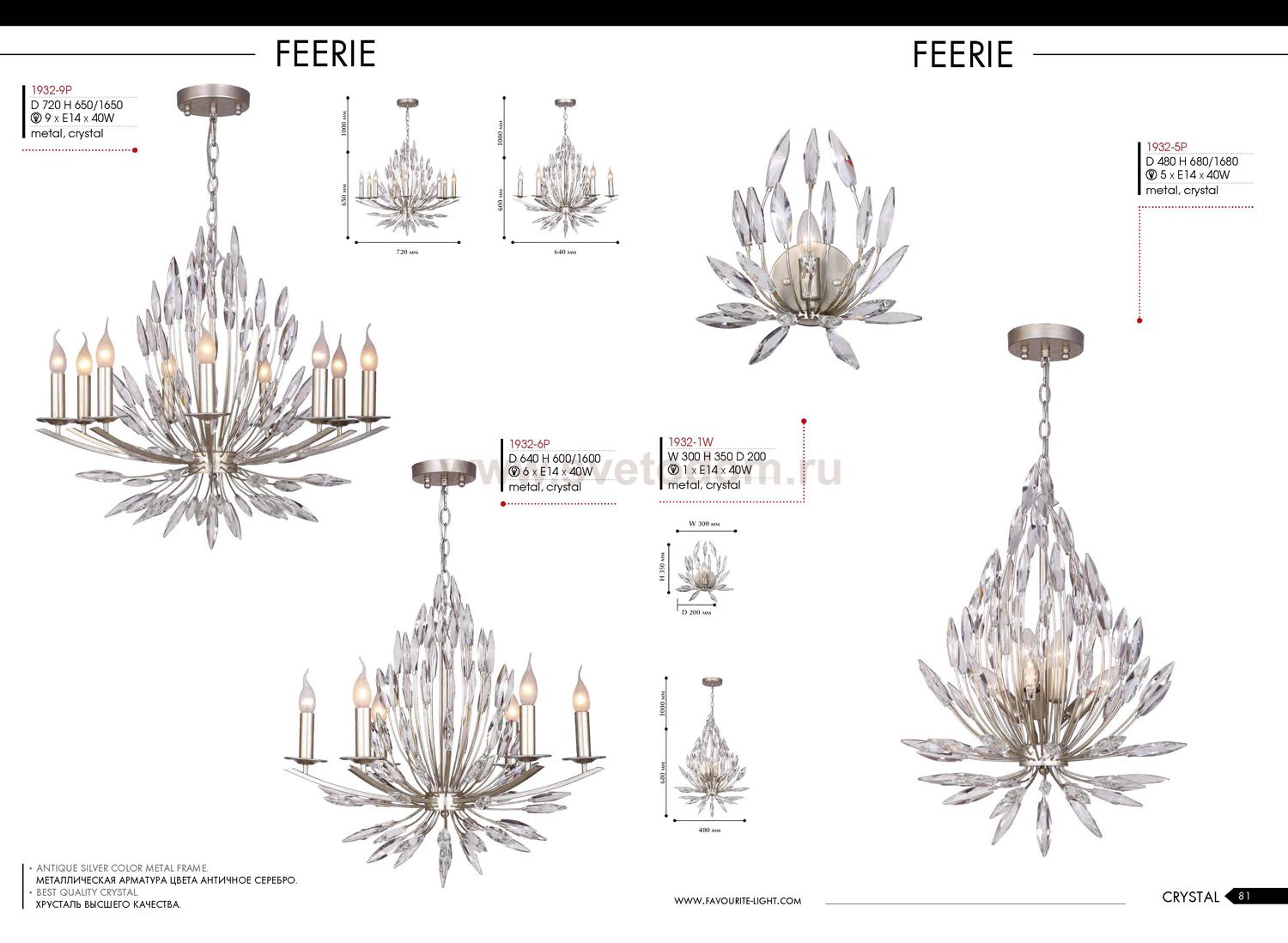 Favourite Feerie 1932-1W Светильник настенный бра сделает Ваш интерьер современным, стильным и запоминающимся! Наиболее функционально и эстетически привлекательно модель будет смотреться в гостиной, зале, холле или другой комнате. А в комплекте с люстрой и торшером из этой же коллекции сделает интерьер по-дизайнерски профессиональным и законченным.