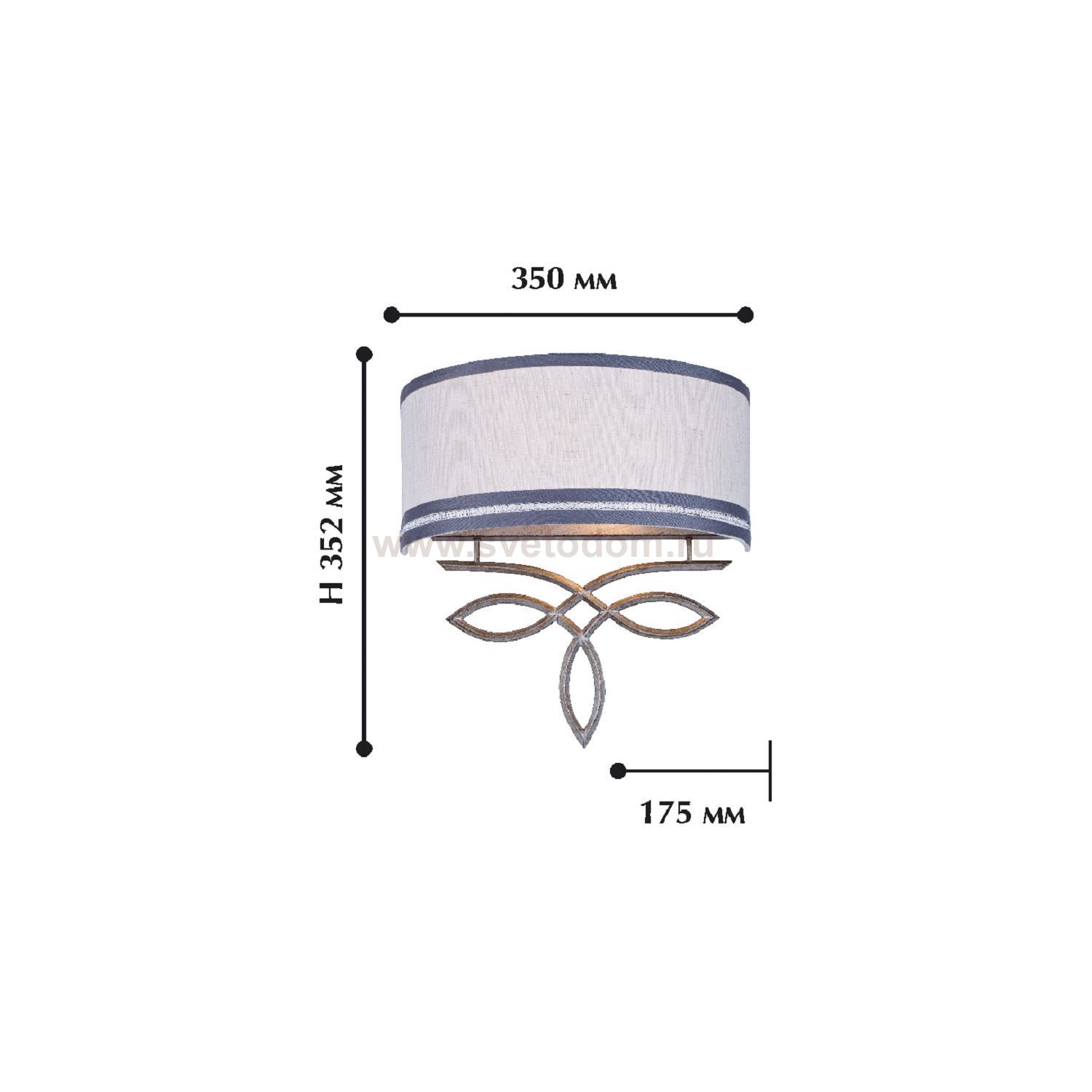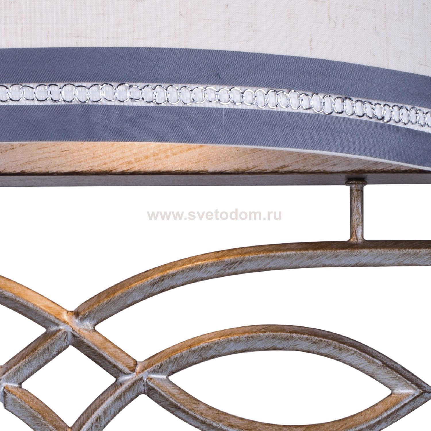 арматура окрашена в цвет античного серебра (патинированное серебро), абажуры из белой ткани декорированы узорной тесьмой Материал плафона