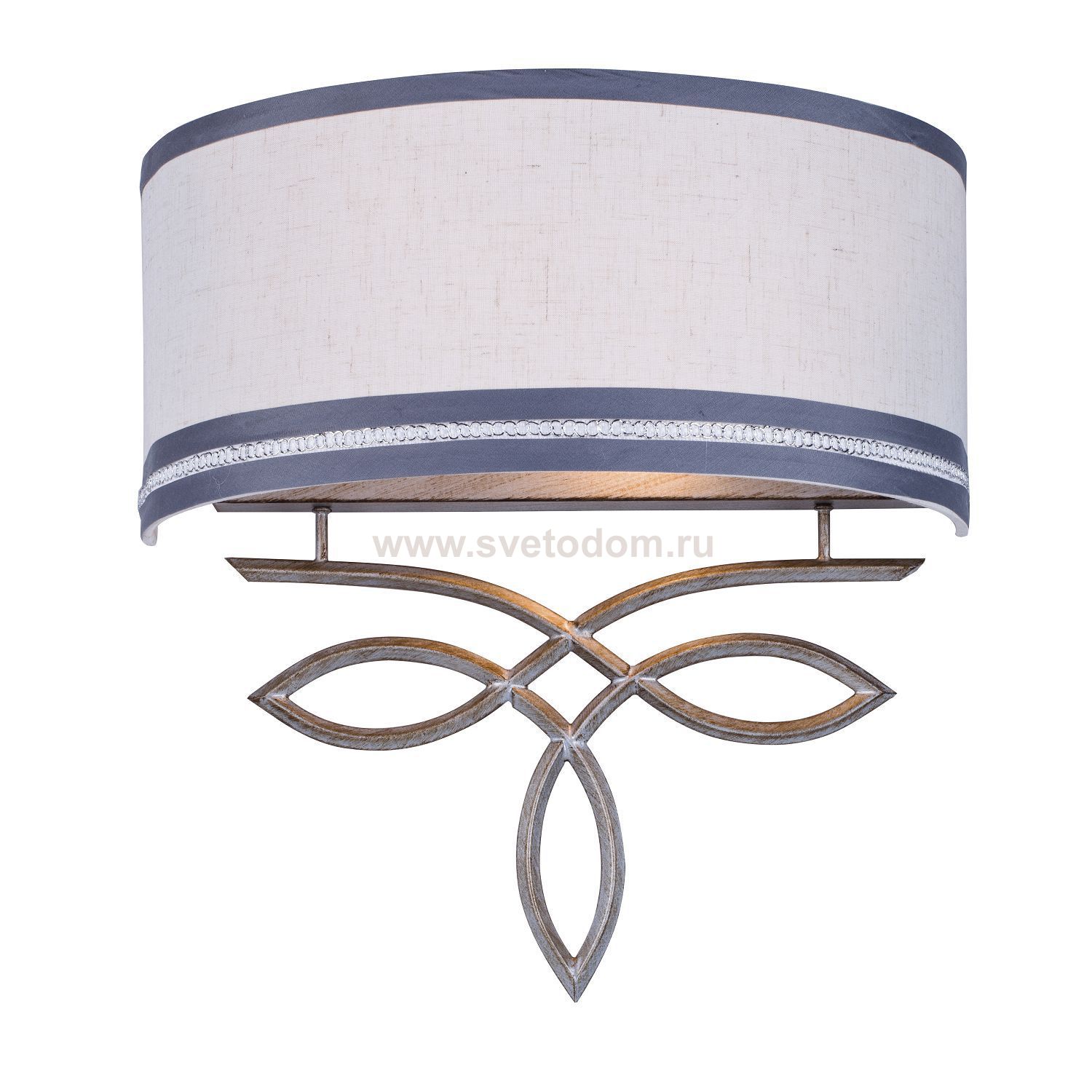 арматура окрашена в цвет античного серебра (патинированное серебро), абажуры из белой ткани декорированы узорной тесьмой. Комментарий