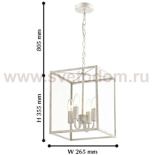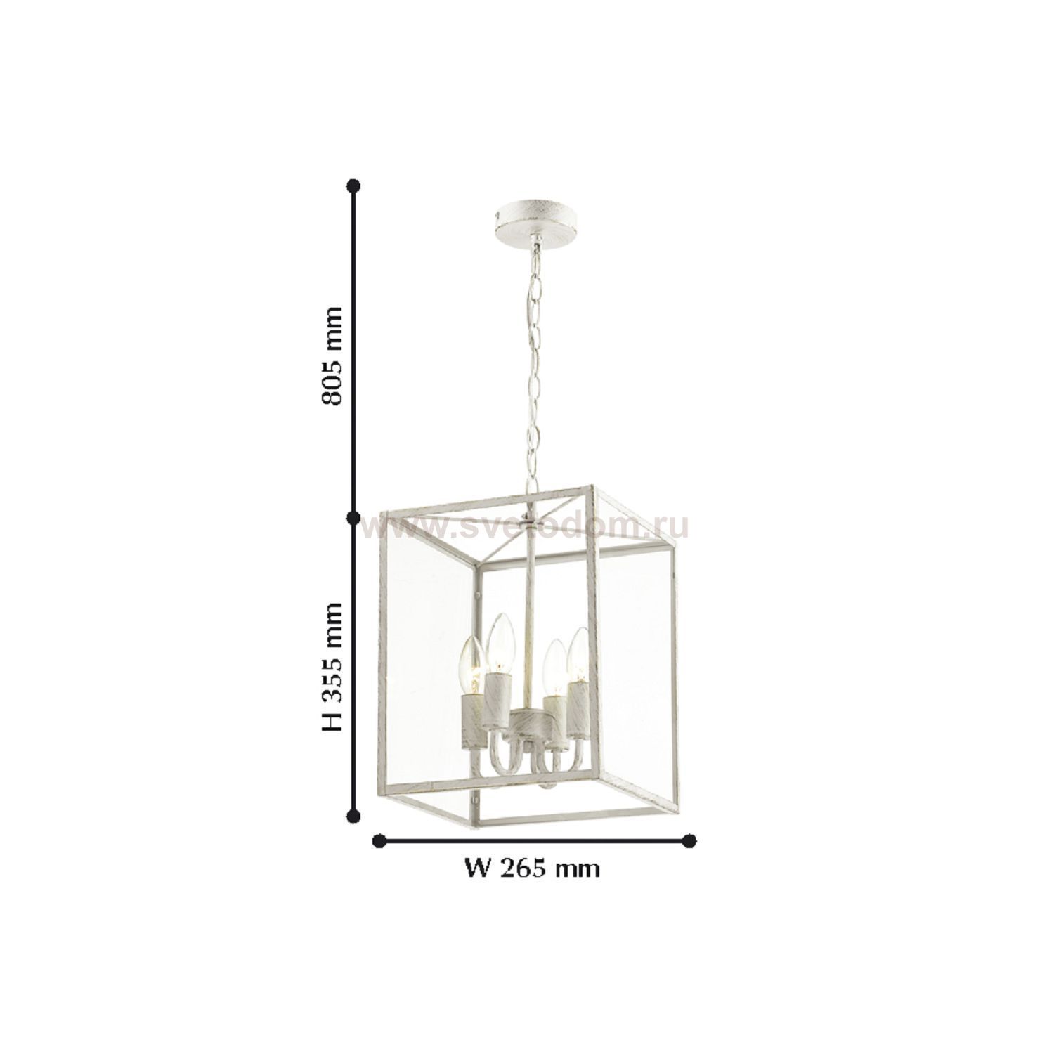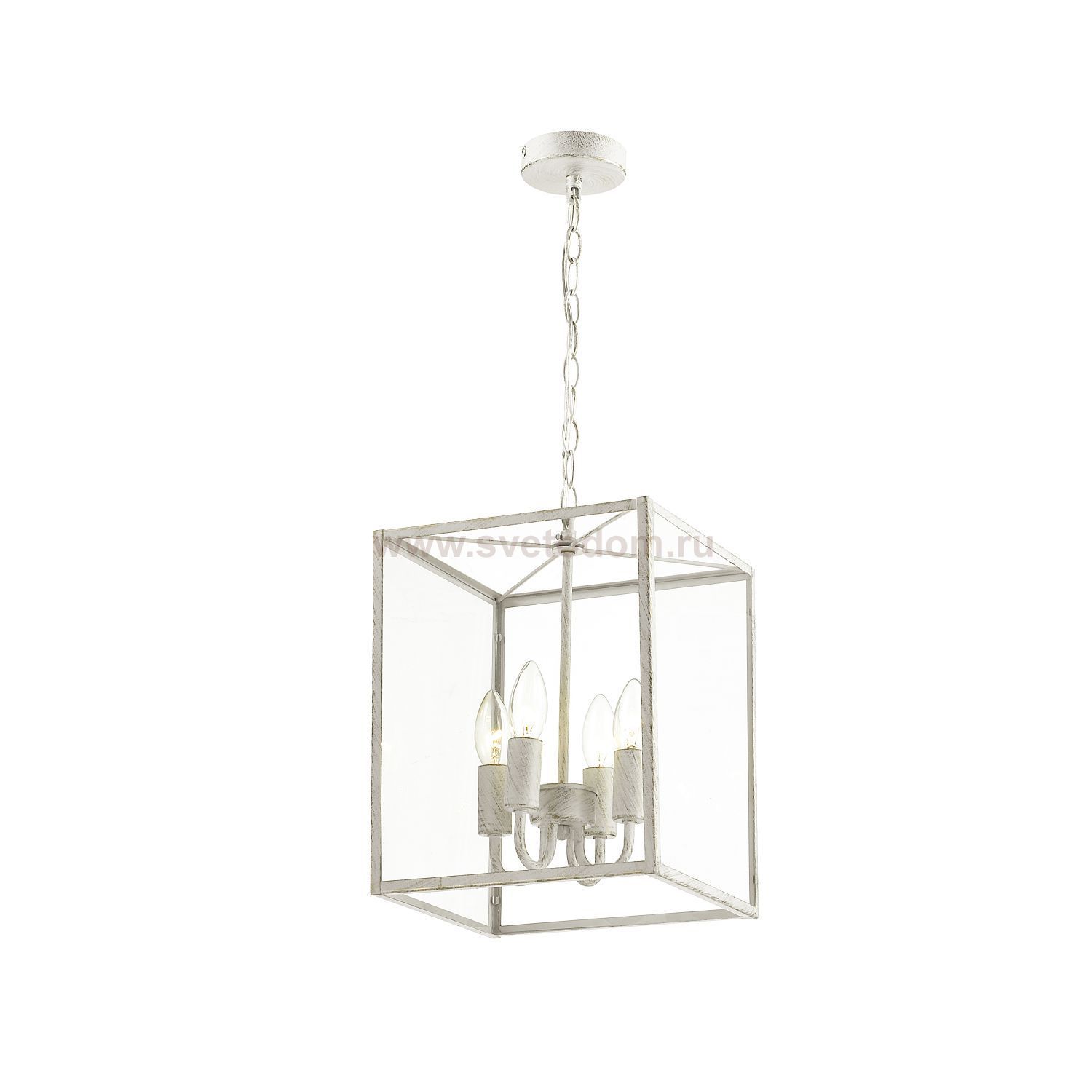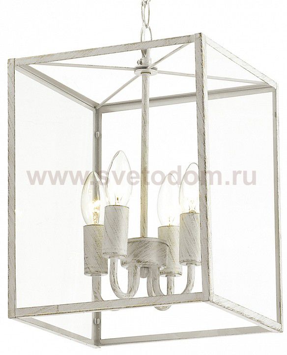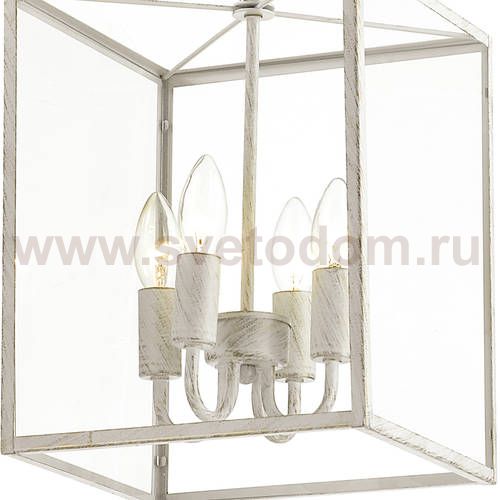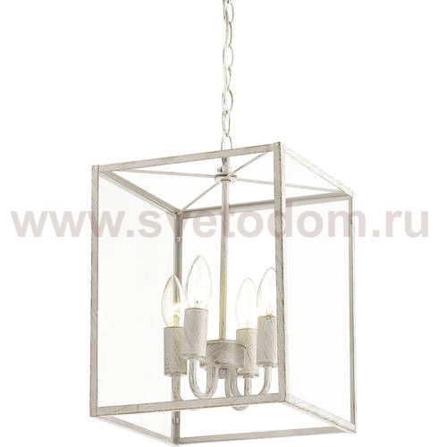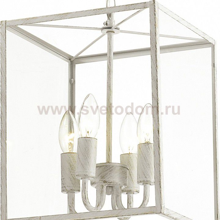 Каркас окрашен в белый с патиной цвет, вставки из прозрачного стекла. Материал плафона