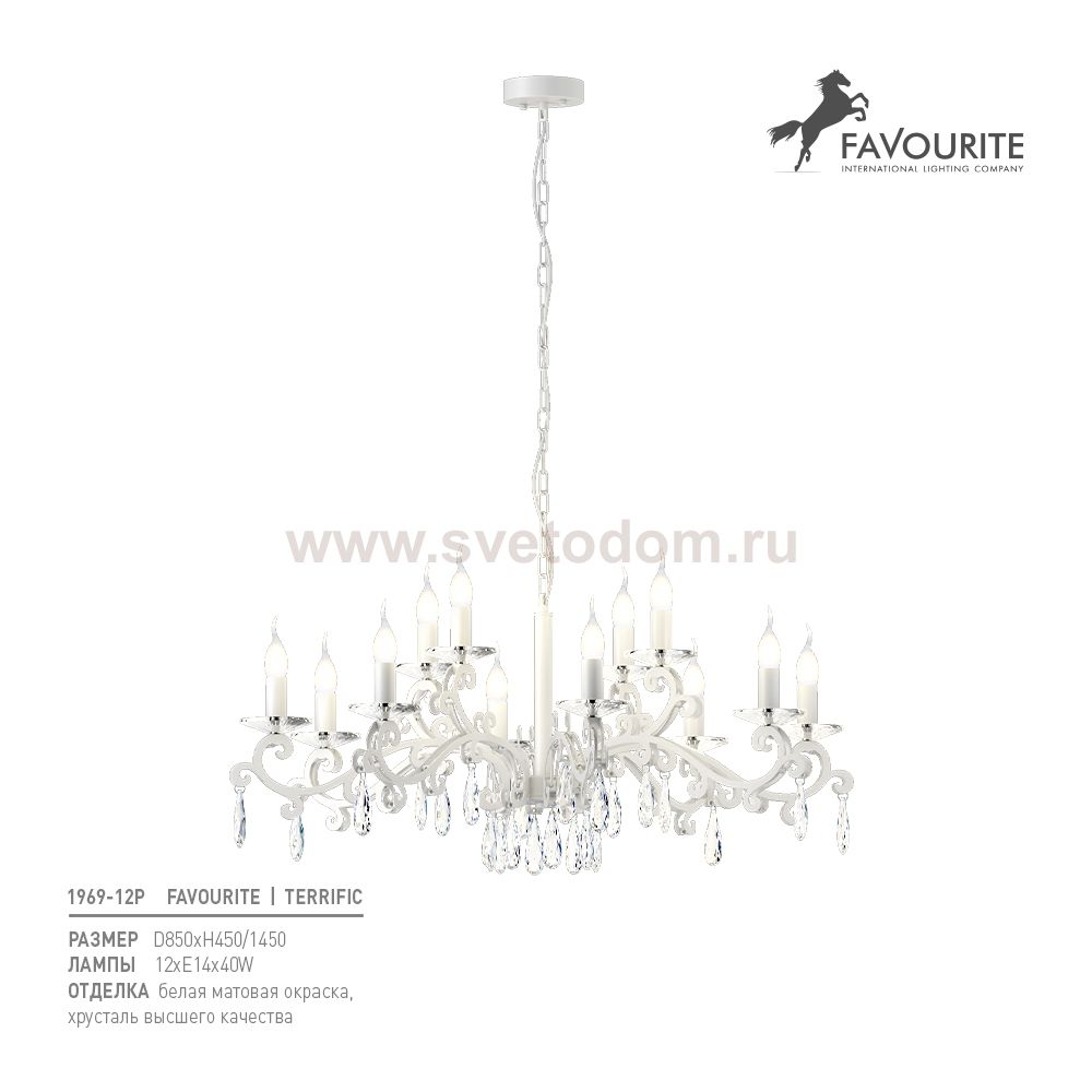 291 Отзывы Люстра Favourite 1969-12P TerrificПока нет отзывов об этом товаре, напишите и он обязательно появится после модерации! Оставить свой отзывПохожие товары Другие товары магазина Фото
