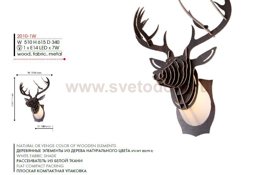 цвет дерева венге, источник света в тканевом каркасе Материал плафона