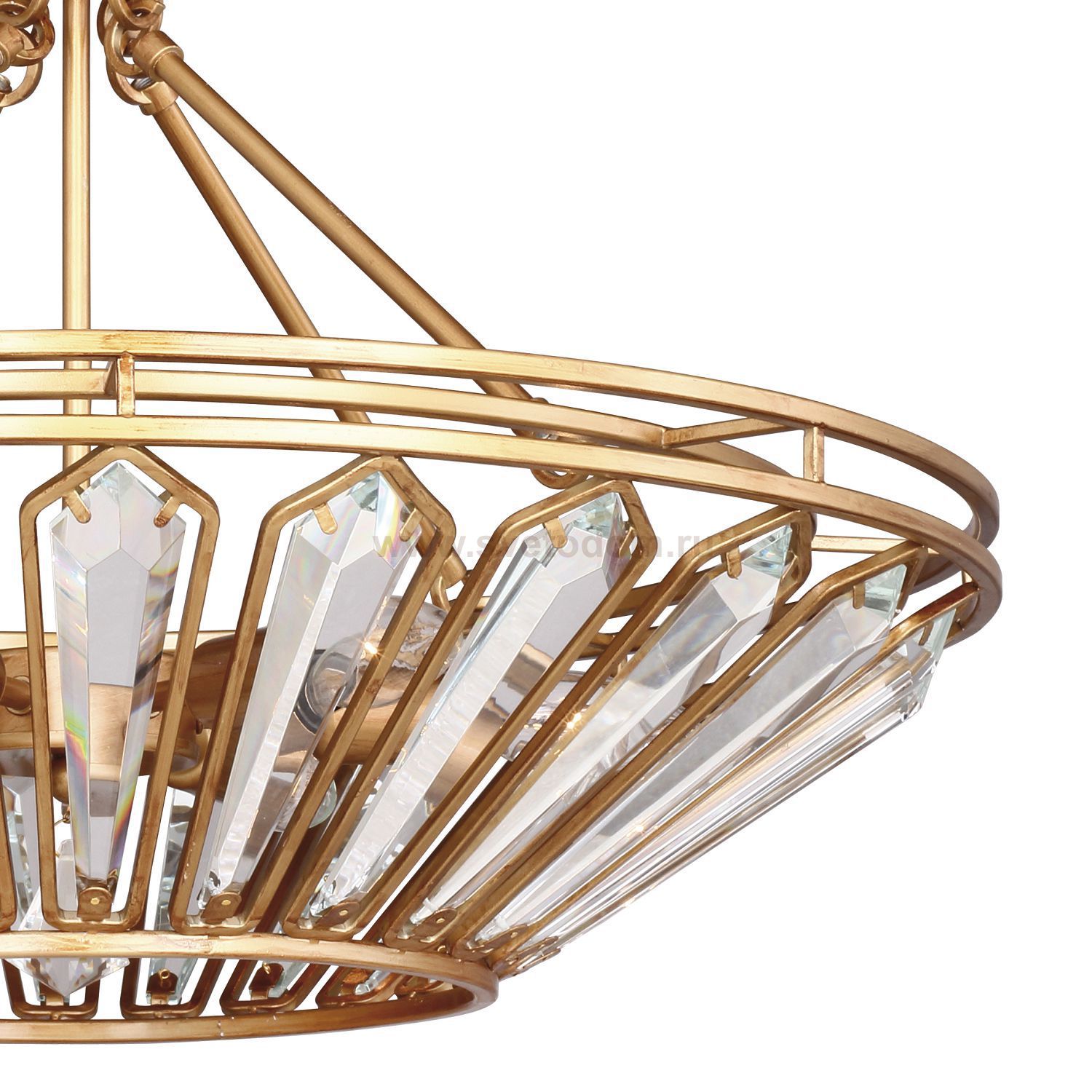 золотисто-коричневый металл, прозрачный хрусталь высшего качества Материал плафона