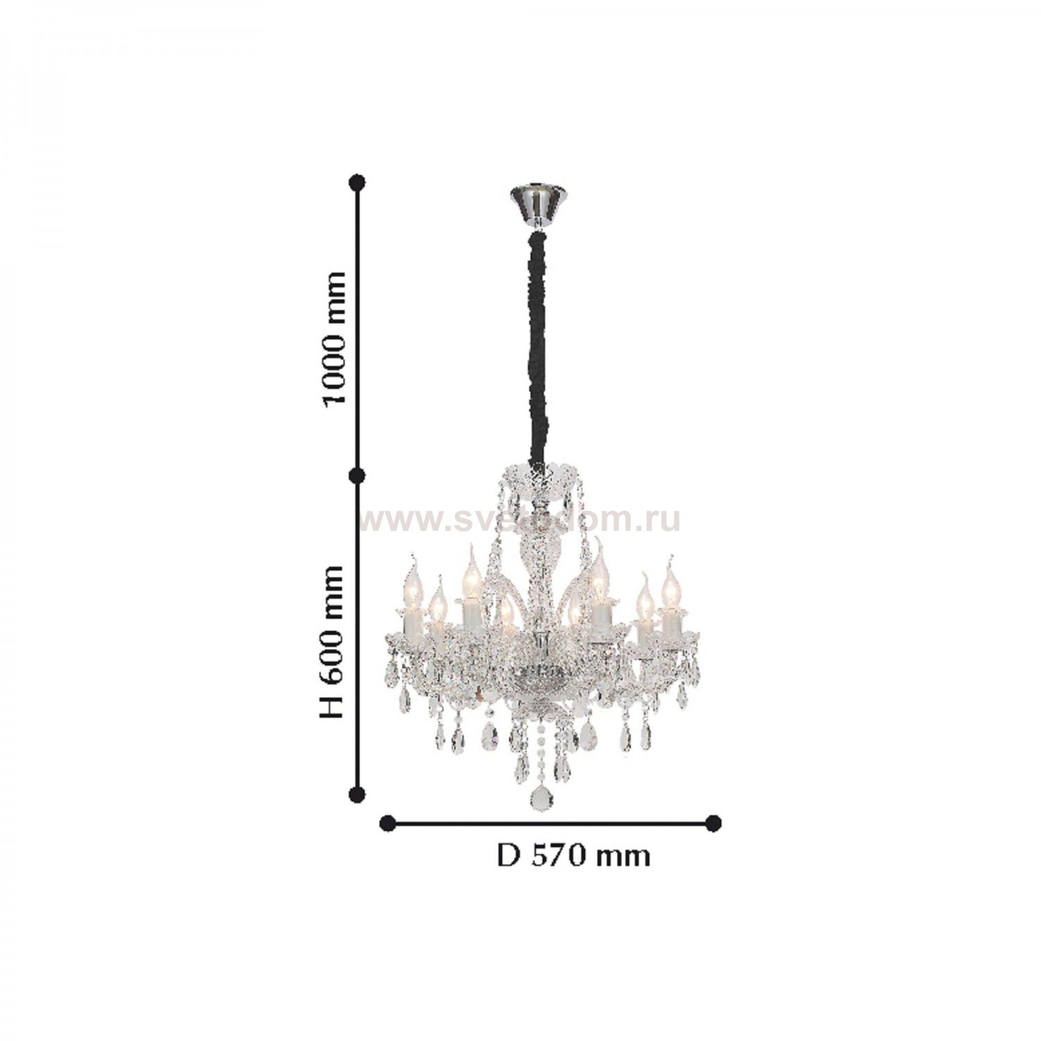 каркас цвета хром, прозрачный хрусталь высшего качества, прозрачное стекло Материал плафона