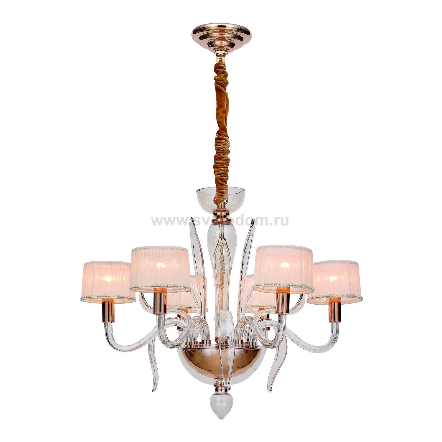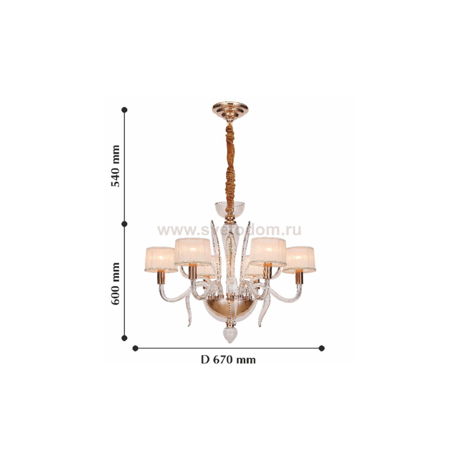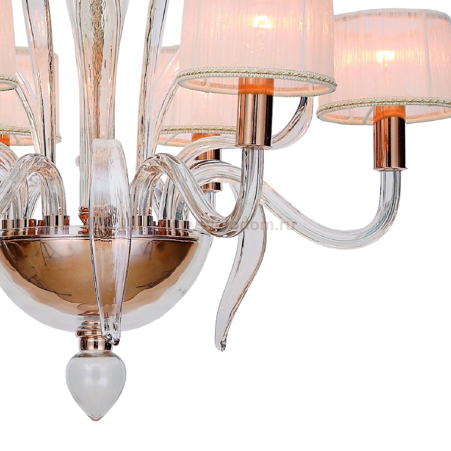 каркас покрыт гальваникой золотого цвета, стеклянные элементы цвета шампанского, абажуры из бежевой органзы Материал плафона