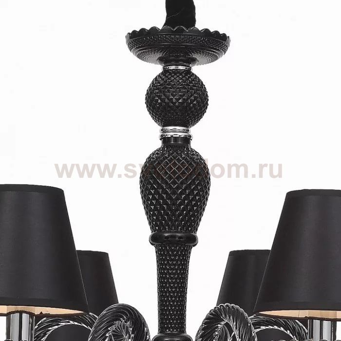 каркас цвета хром, рожки и декоративные элементы из выдувного стекла дуплекс - черный+прозрачный, абажуры из черного атлана на белом виниловом каркасе Комментарий