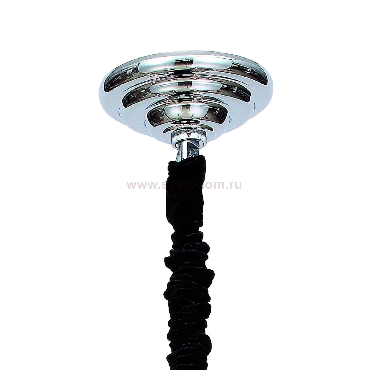 каркас цвета хром, рожки и декоративные элементы из выдувного стекла дуплекс - черный+прозрачный, абажуры из черного атласа на белом виниловом каркасе Материал плафона