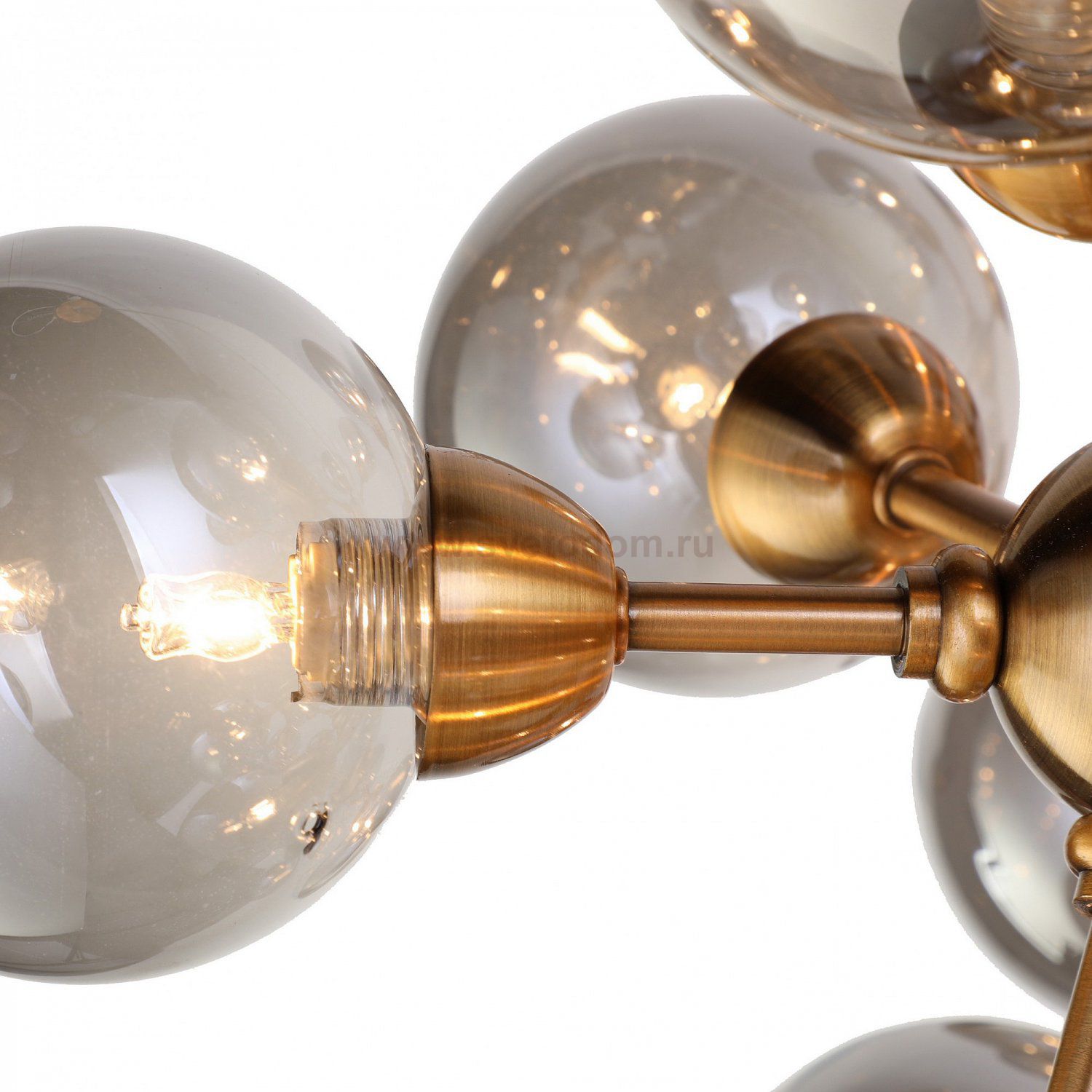 металл цвета золотистой бронзы, дымчатые выдувные стекла Материал плафона