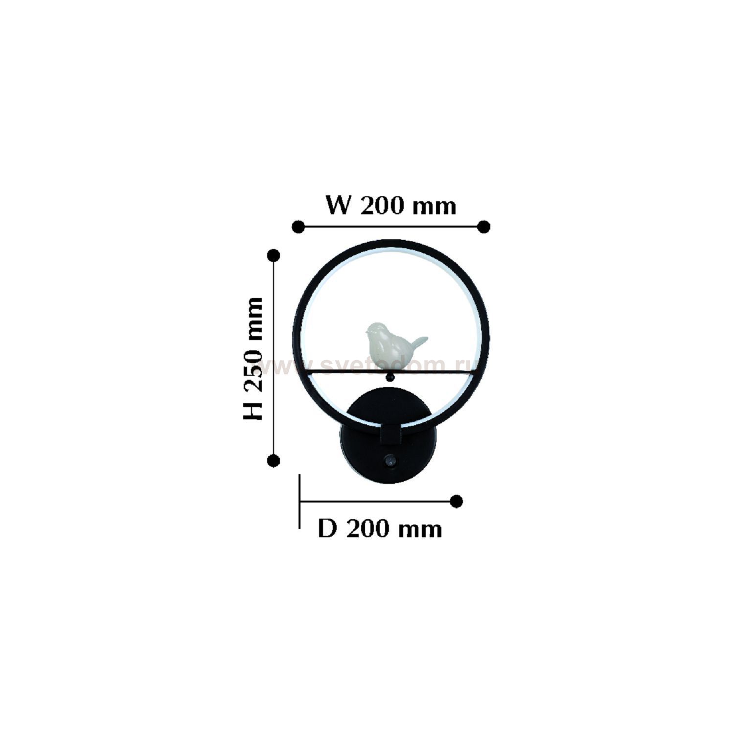 черный каркас с акриловой фигуркой птички, светильник с выключателем Материал плафона