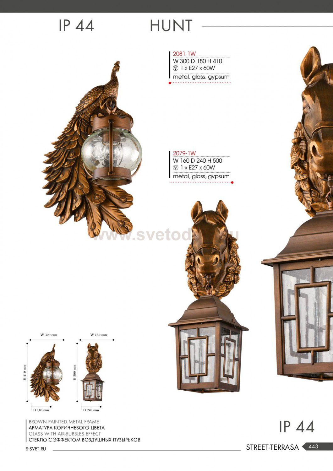 каркас окрашен в коричневый цвет, стекло с эффектом воздушных пузырьков Комментарий