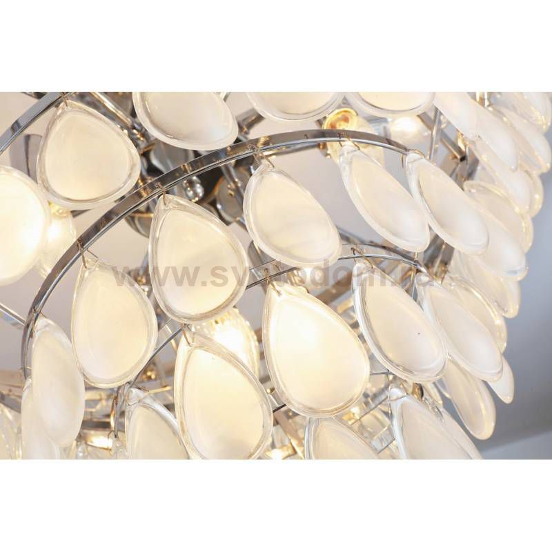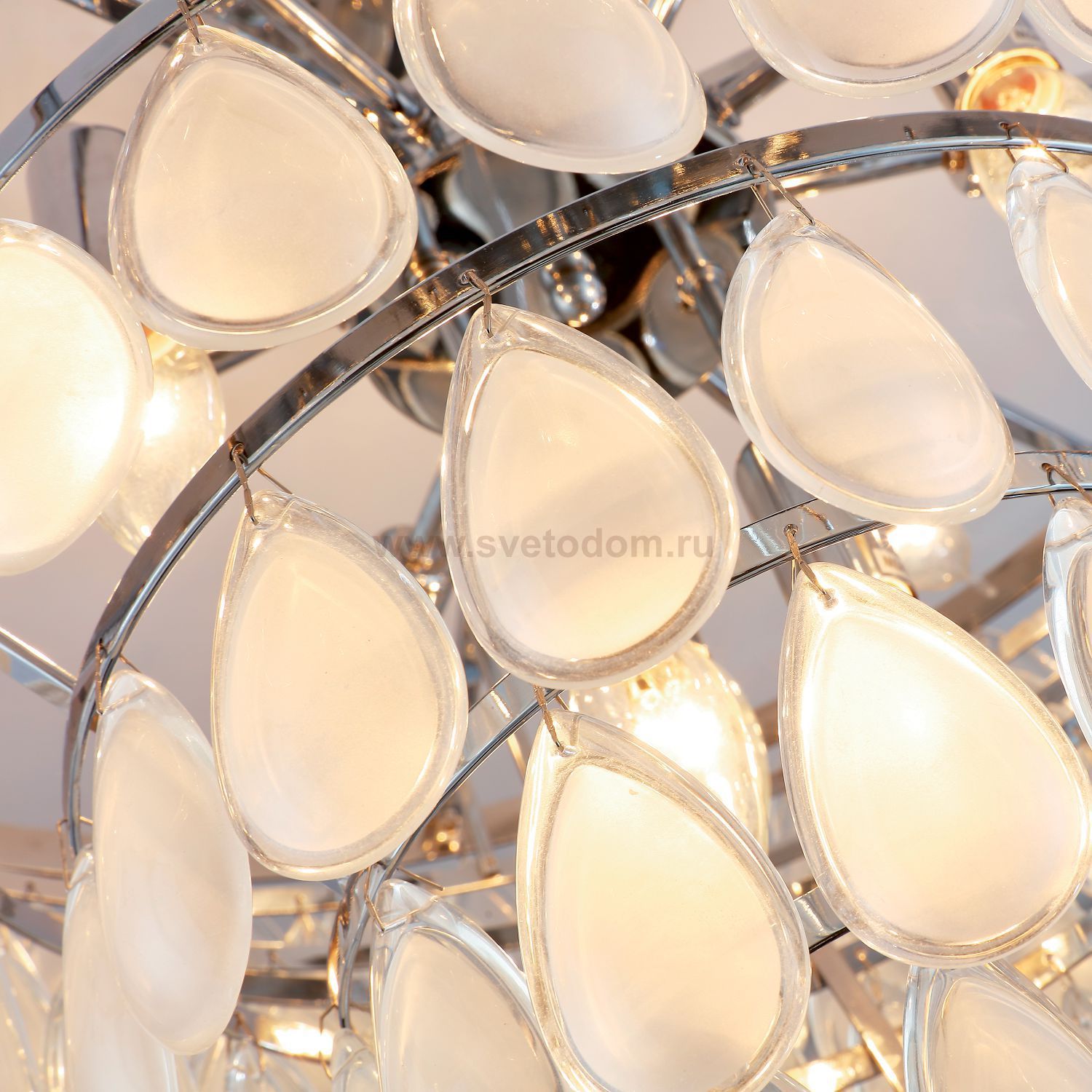 каркас покрыт гальваникой цвета хром, стеклянные подвески белого цвета Комментарий