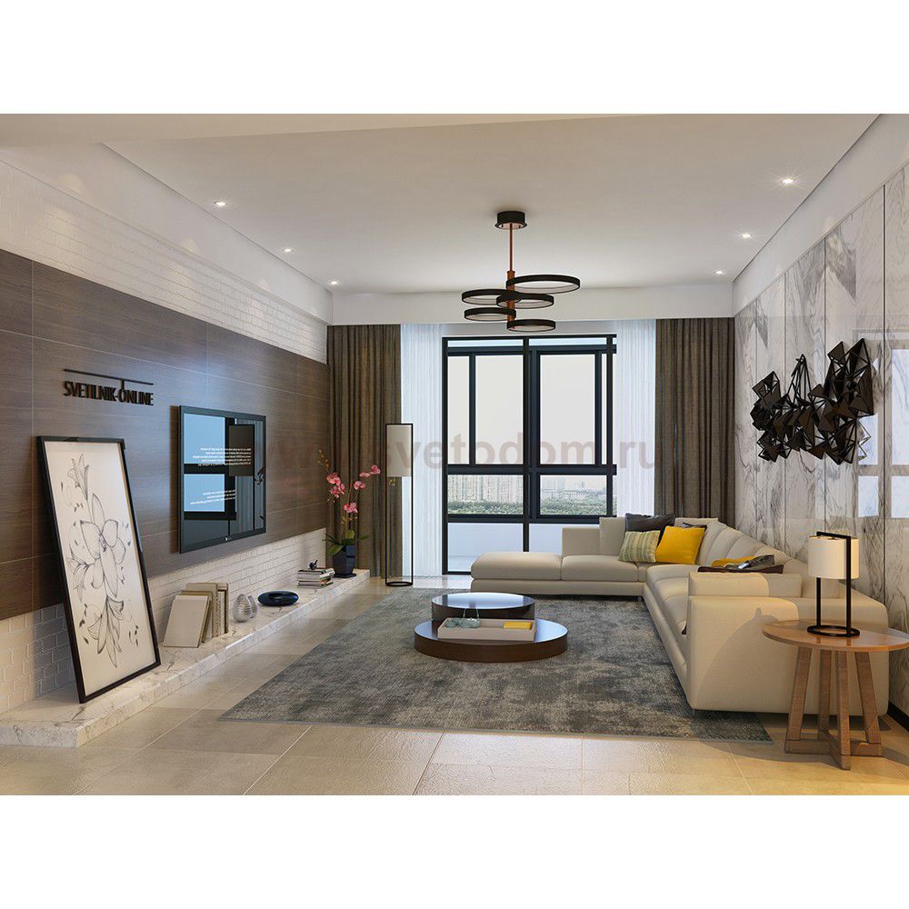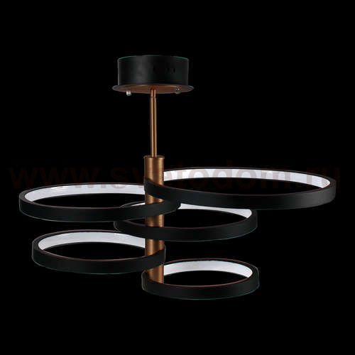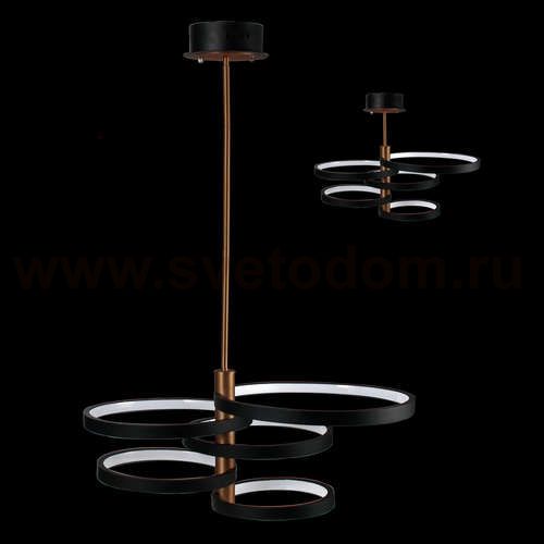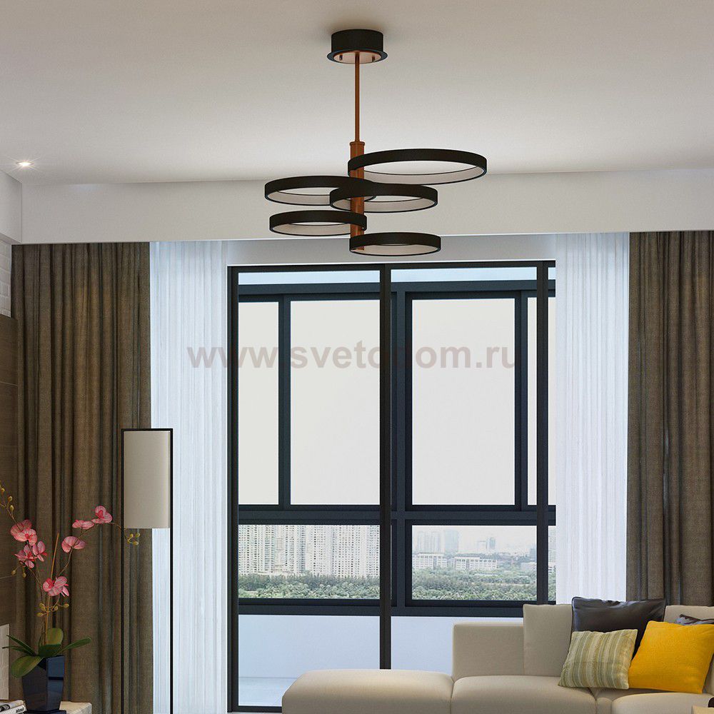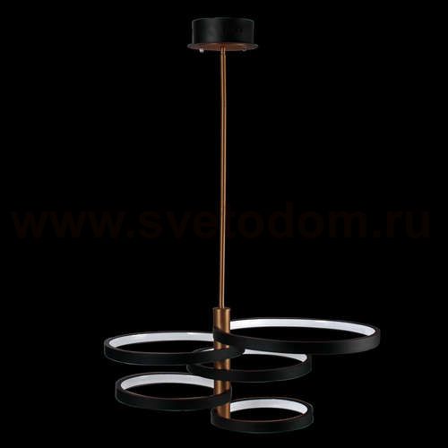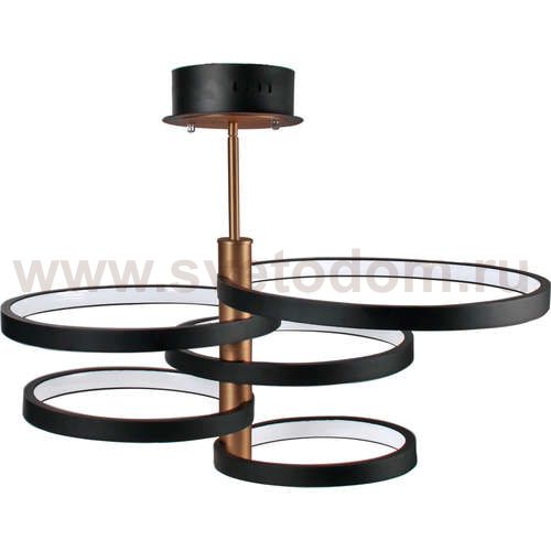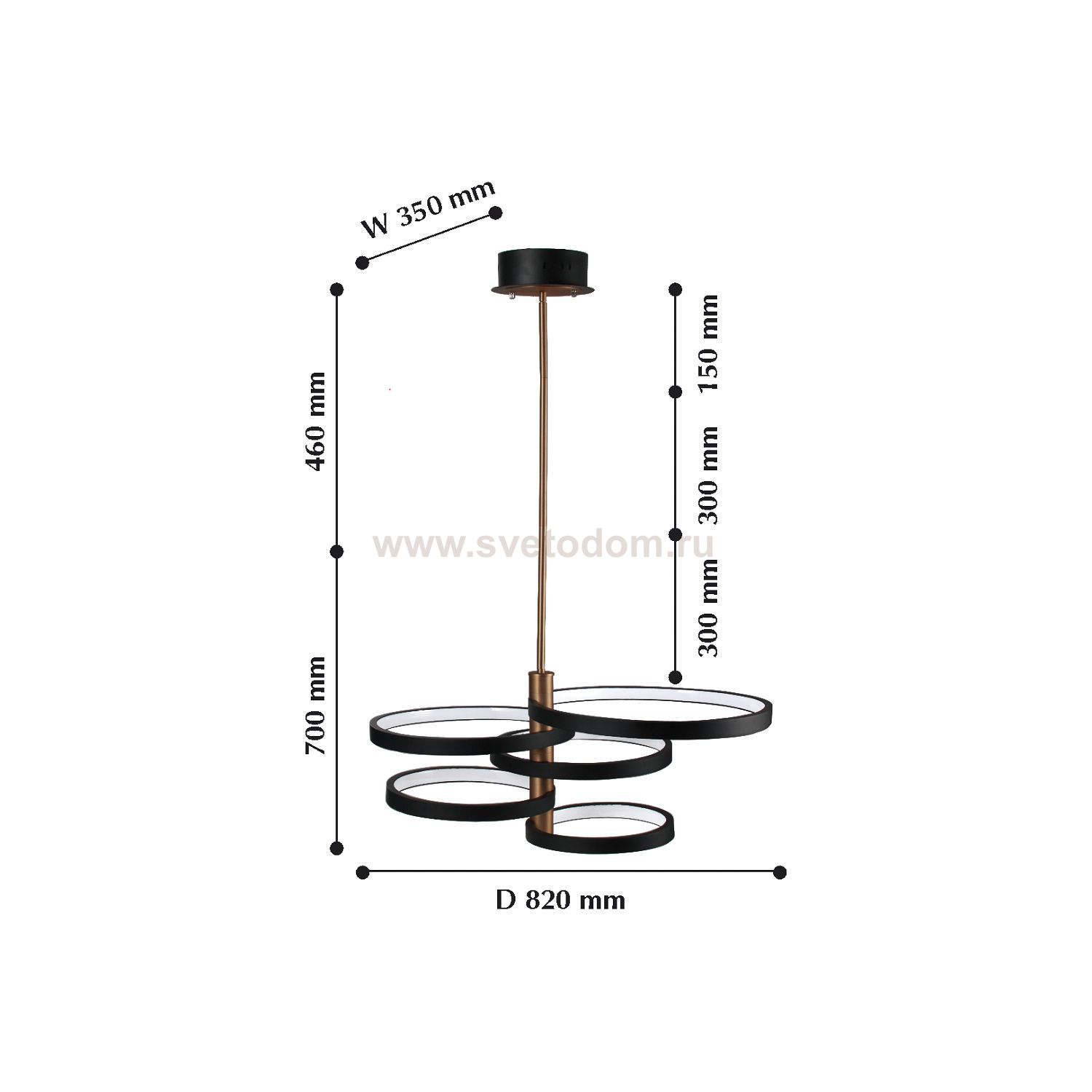 каркас окрашен в черный цвет в сочетании с золотым, белый акриловый рассеиватель LED, кольца могут вращаться вокруг центральной оси, регулируемая высота за счет составной из нескольких частей центральной трубки Материал плафона