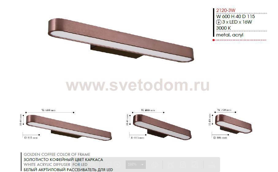 золотисто-кофейный цвет каркаса, белый акриловый рессеиватель LED Комментарий