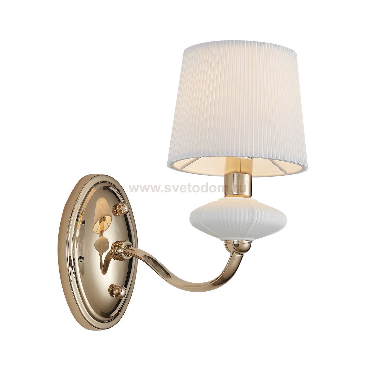 каркас покрыт гальваникой золотого цвета, декоративные элементы из белой керамики, абажуры из белой гофрированной ткани Материал плафона