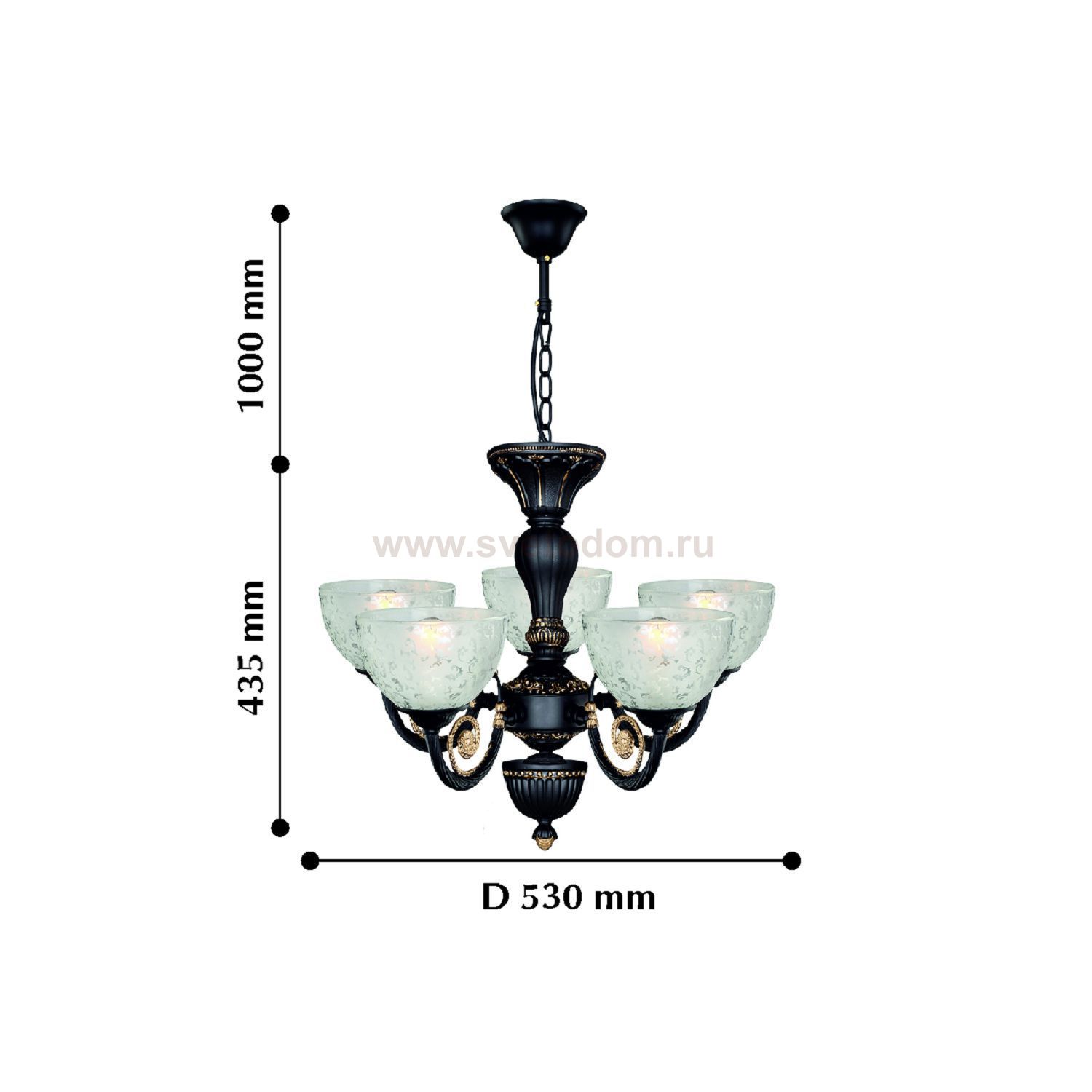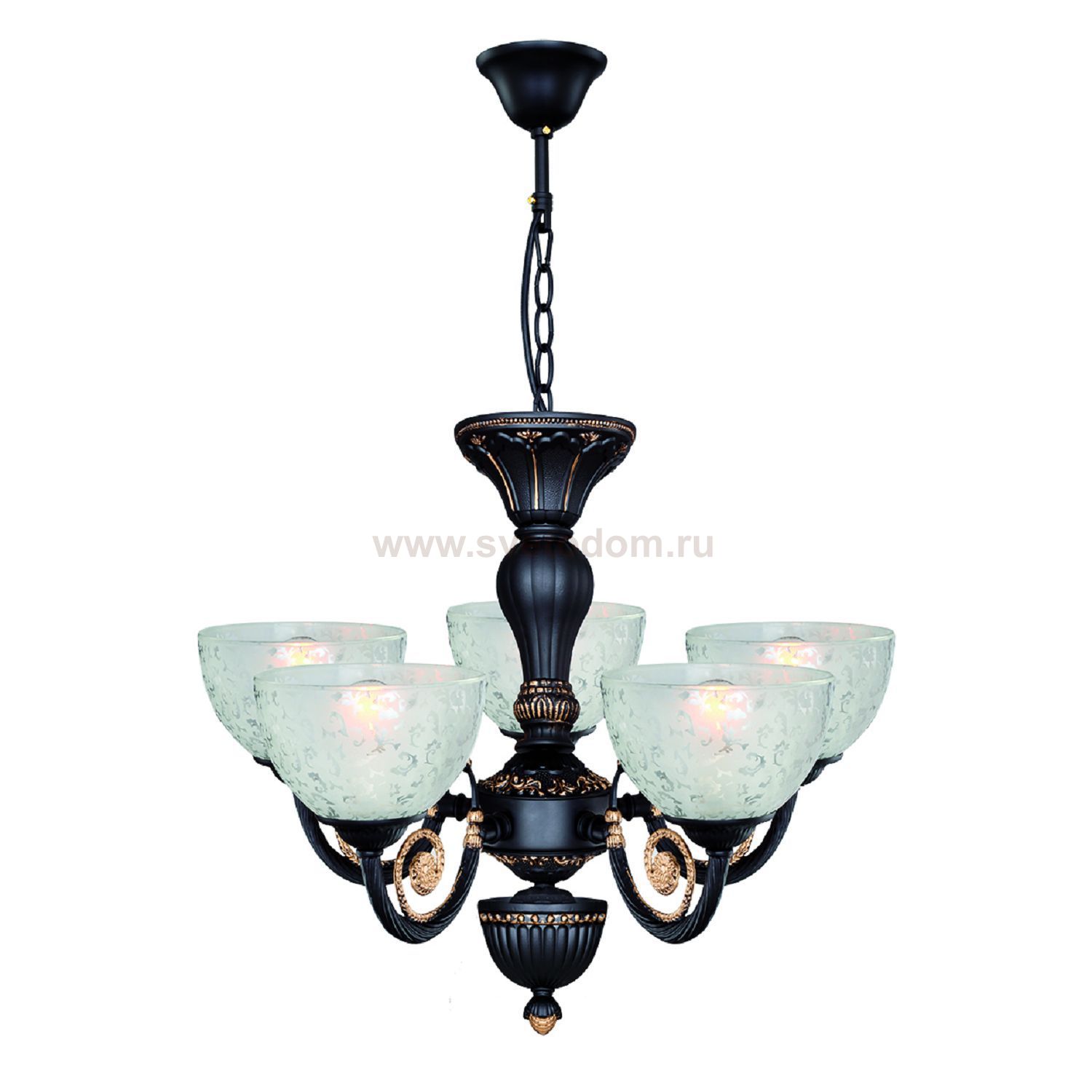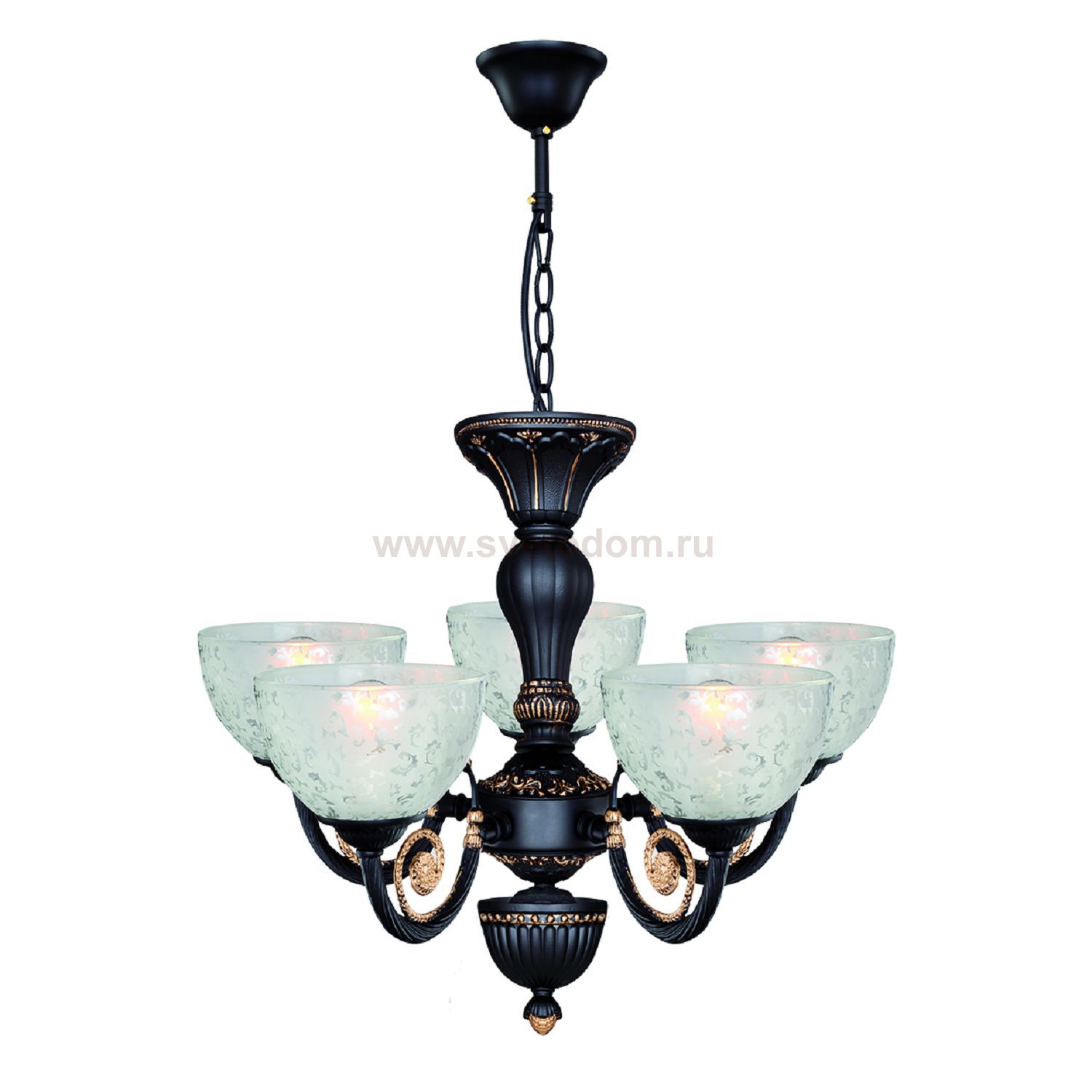 Каркас черного цвета с золочением декоративных элементов, плафон и белого стекла с прозрачными узорами. Люстры с системой 2в1, убрав цепь можно использовать как потолочный светильник. Так же люстры можно монтировать как плафонами вверх, так и вниз. Материал плафона