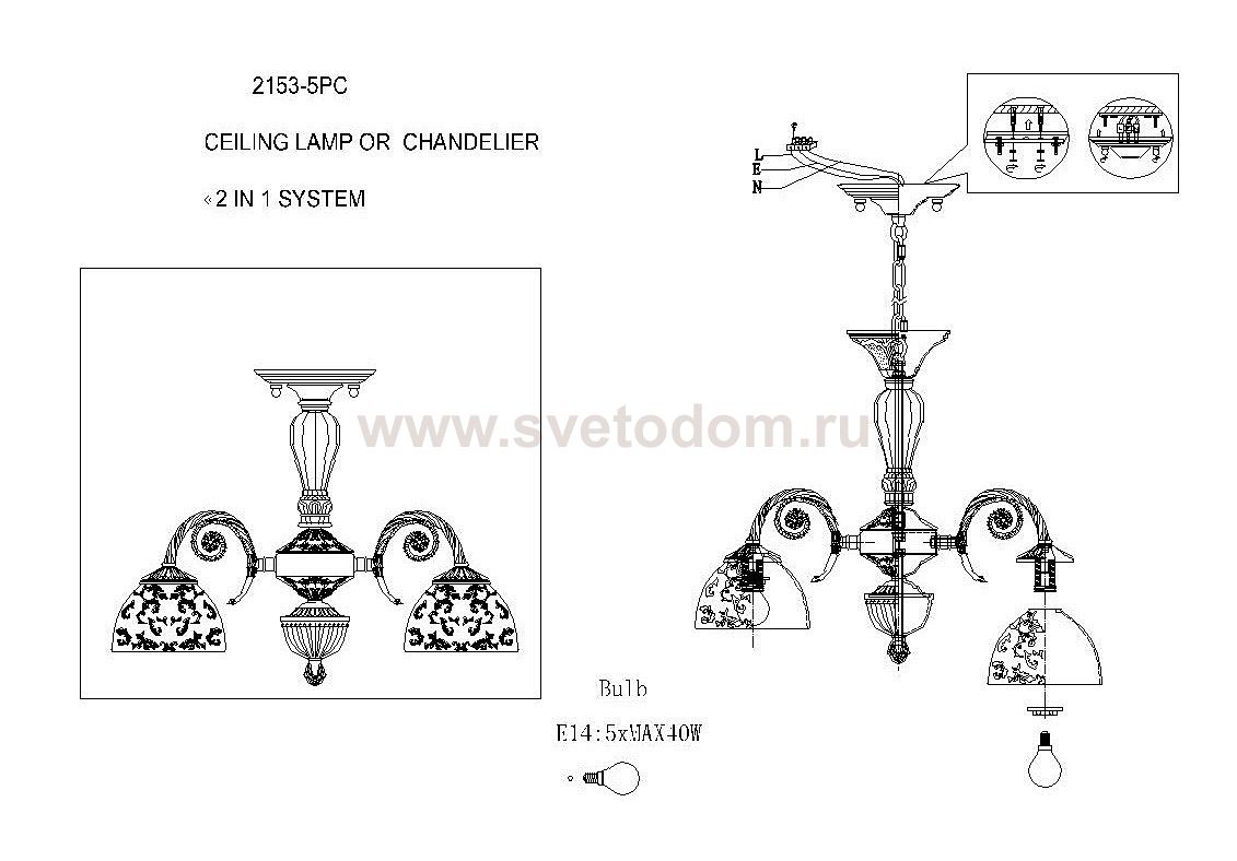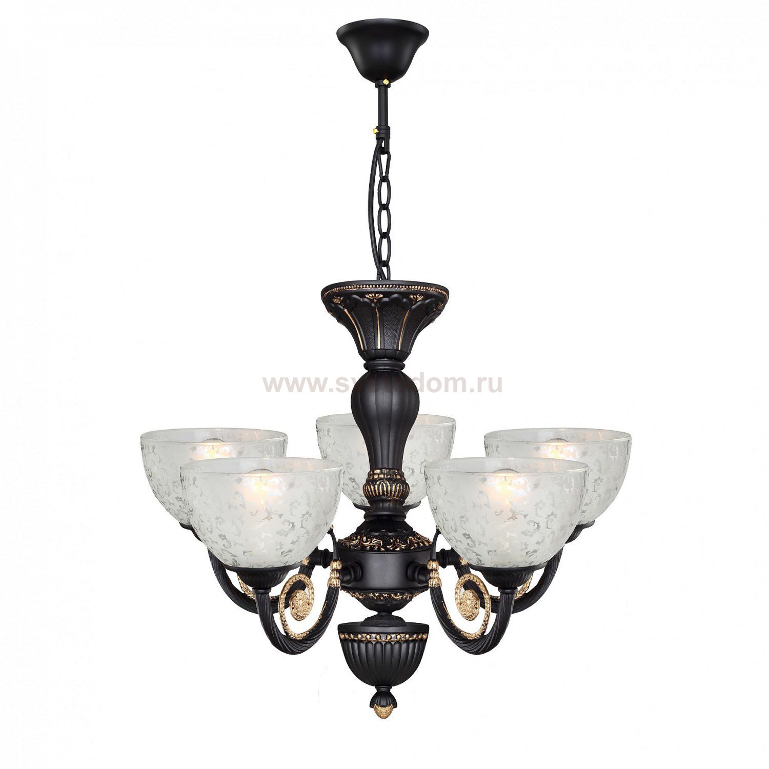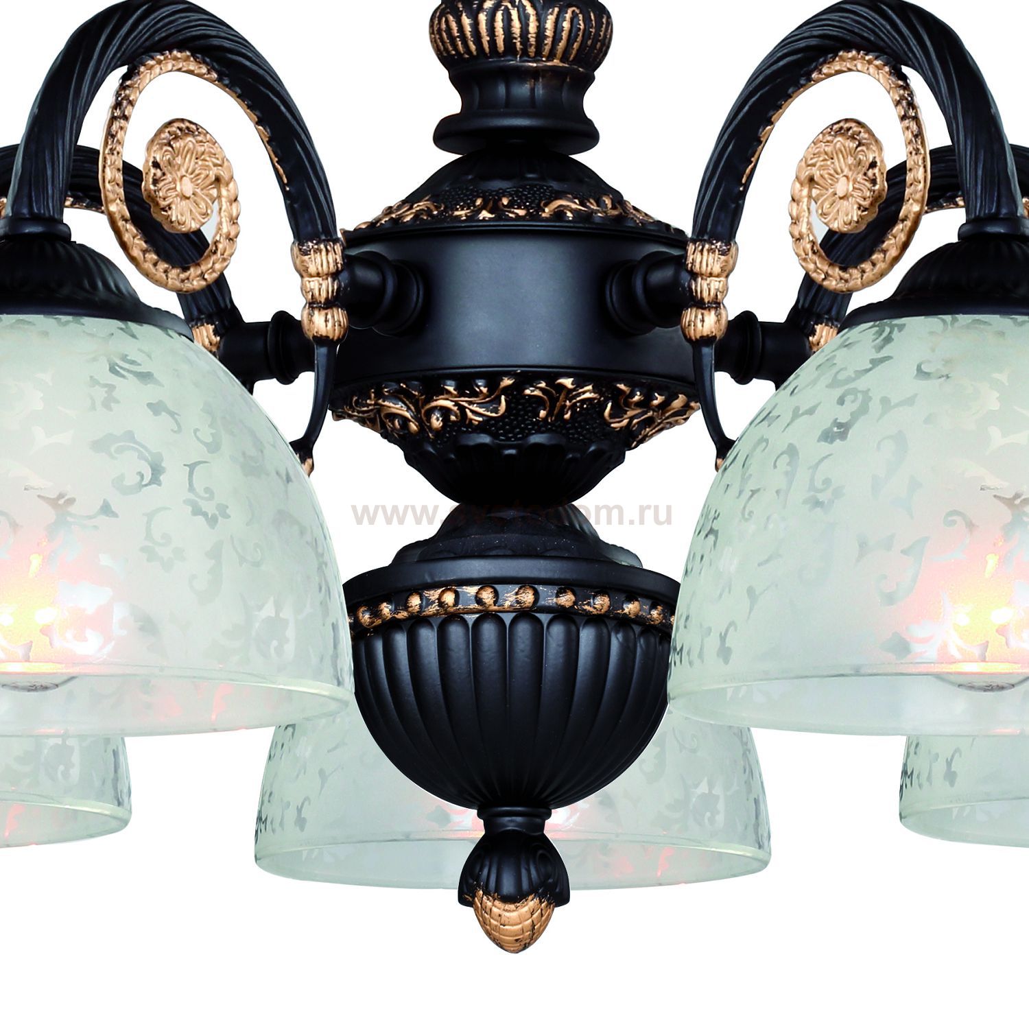 Каркас черного цвета с золочением декоративных элементов, плафон и белого стекла с прозрачными узорами. Люстры с системой 2в1, убрав цепь можно использовать как потолочный светильник. Так же люстры можно монтировать как плафонами вверх, так и вниз. Материал плафона