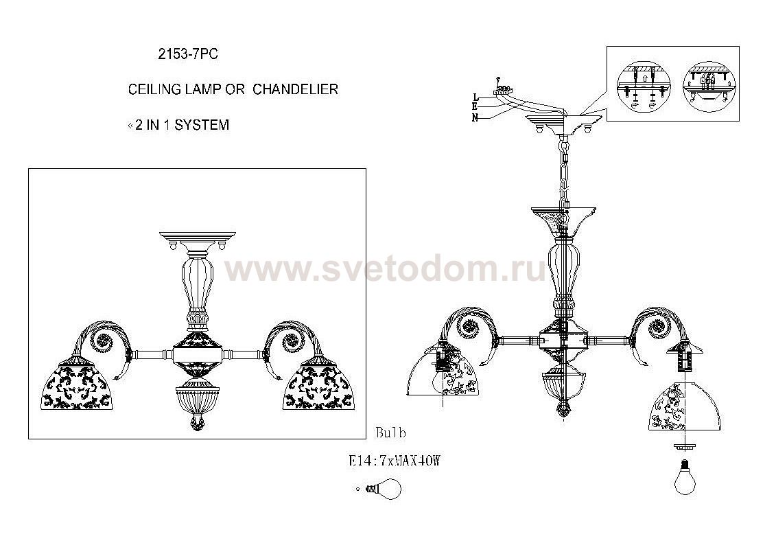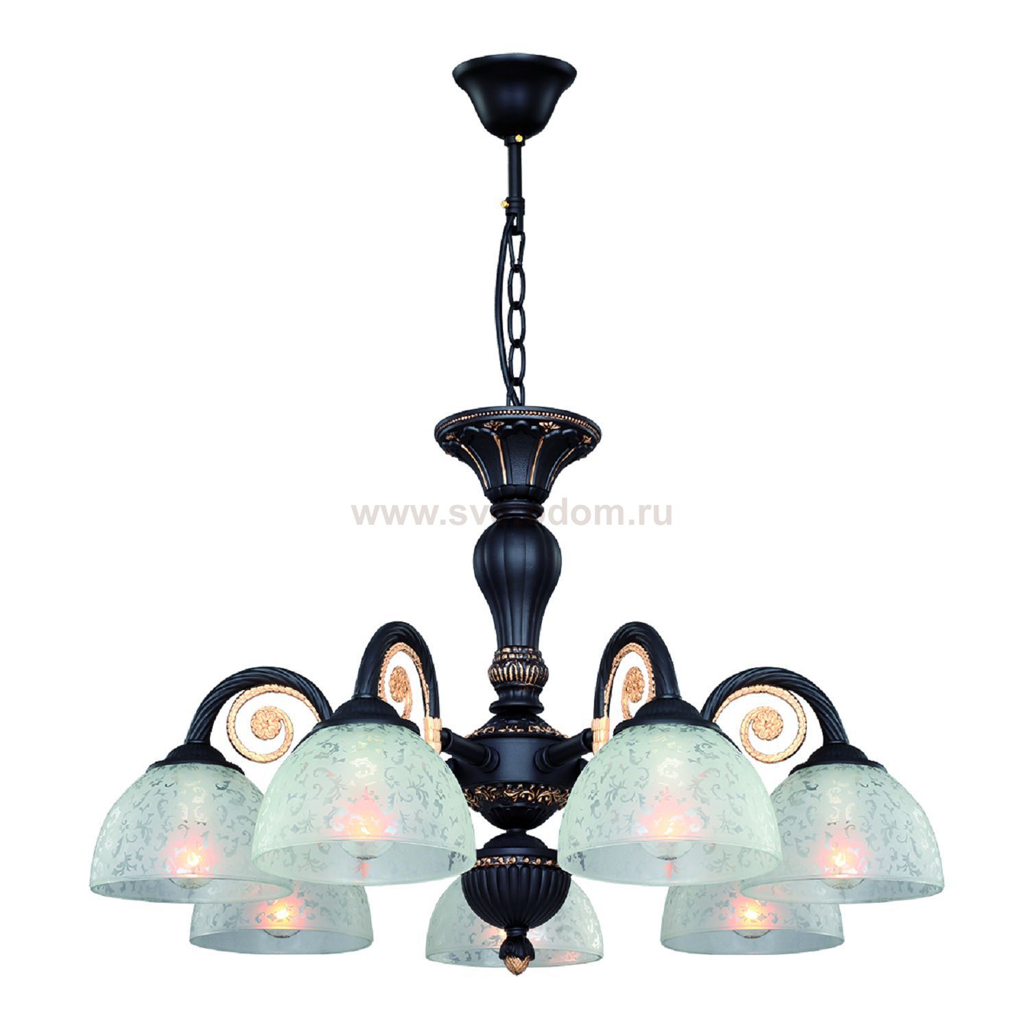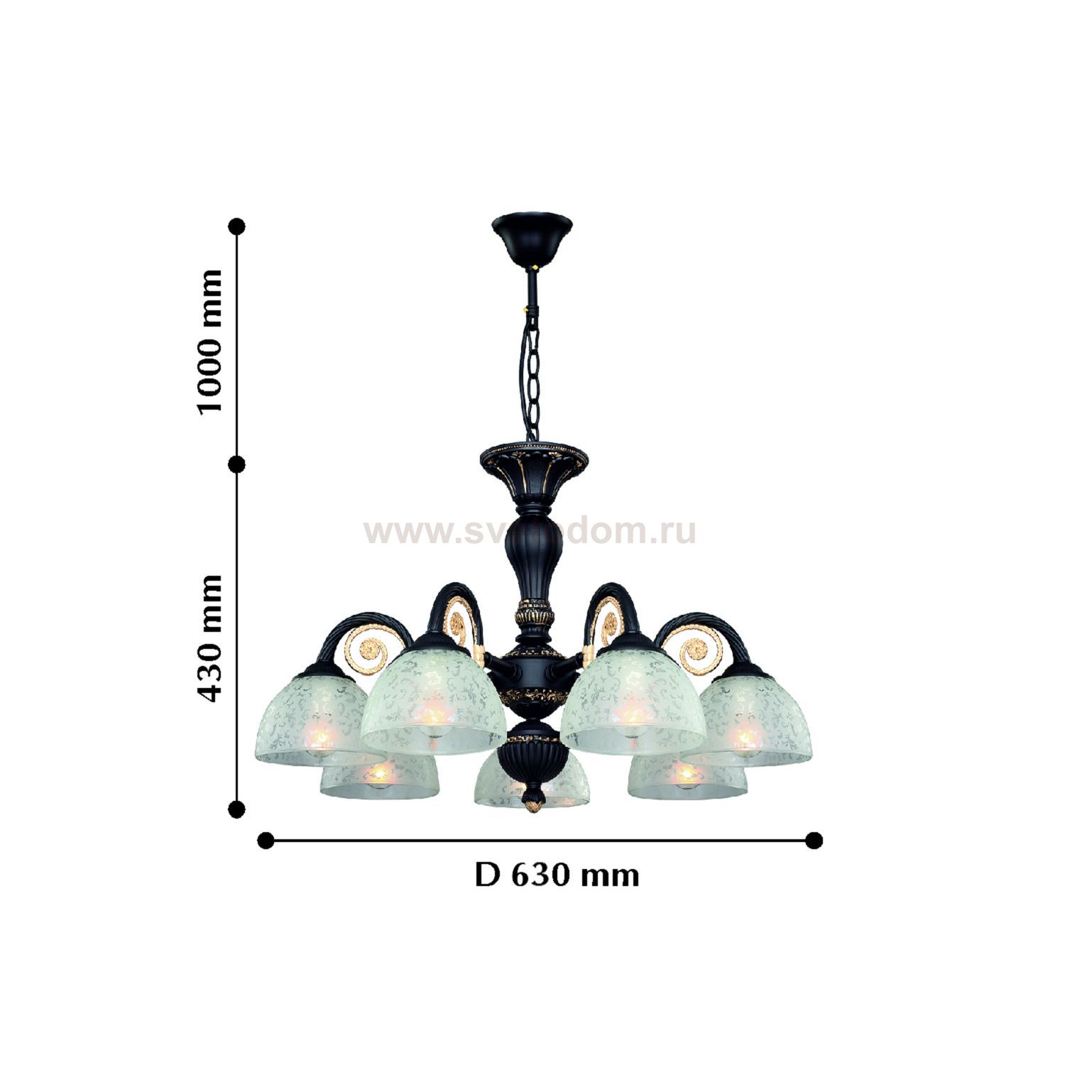 Каркас черного цвета с золочением декоративных элементов, плафон и белого стекла с прозрачными узорами. Люстры с системой 2в1, убрав цепь можно использовать как потолочный светильник. Так же люстры можно монтировать как плафонами вверх, так и вниз. Материал плафона