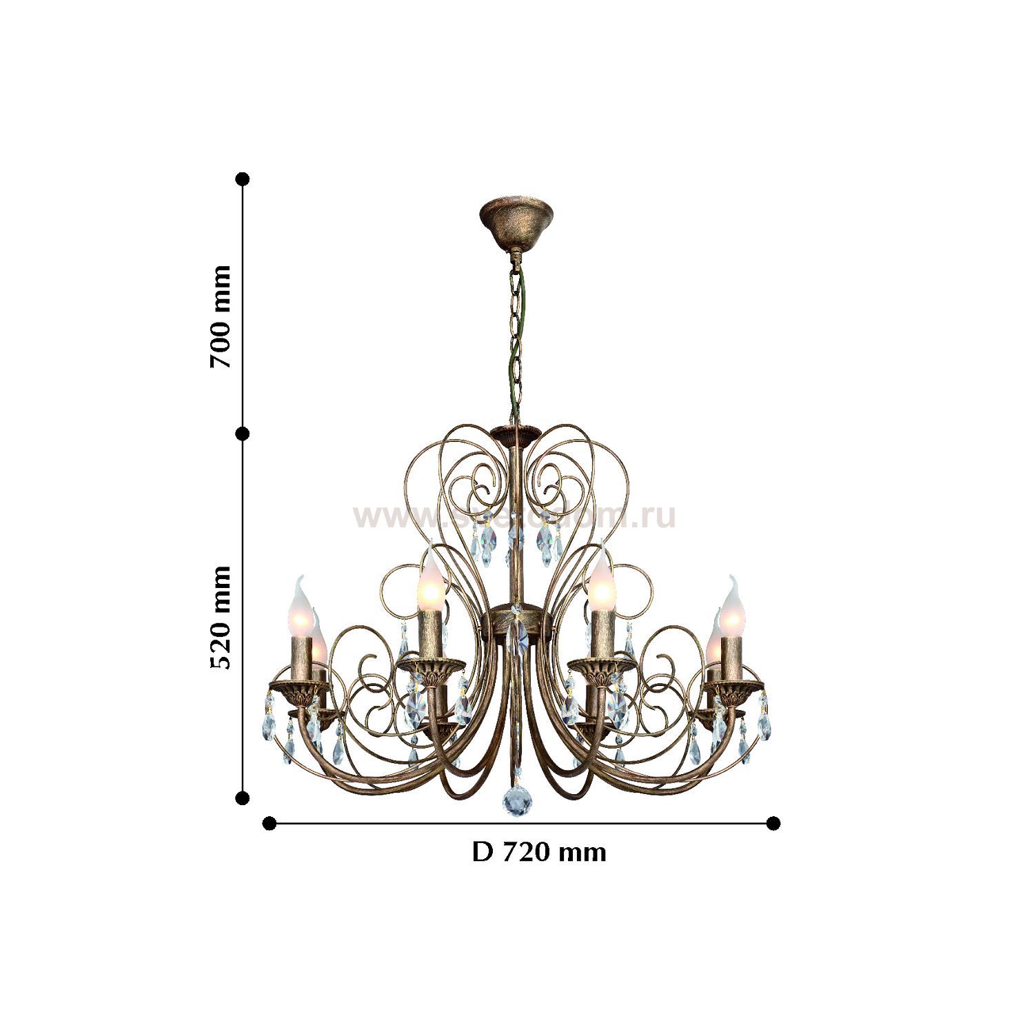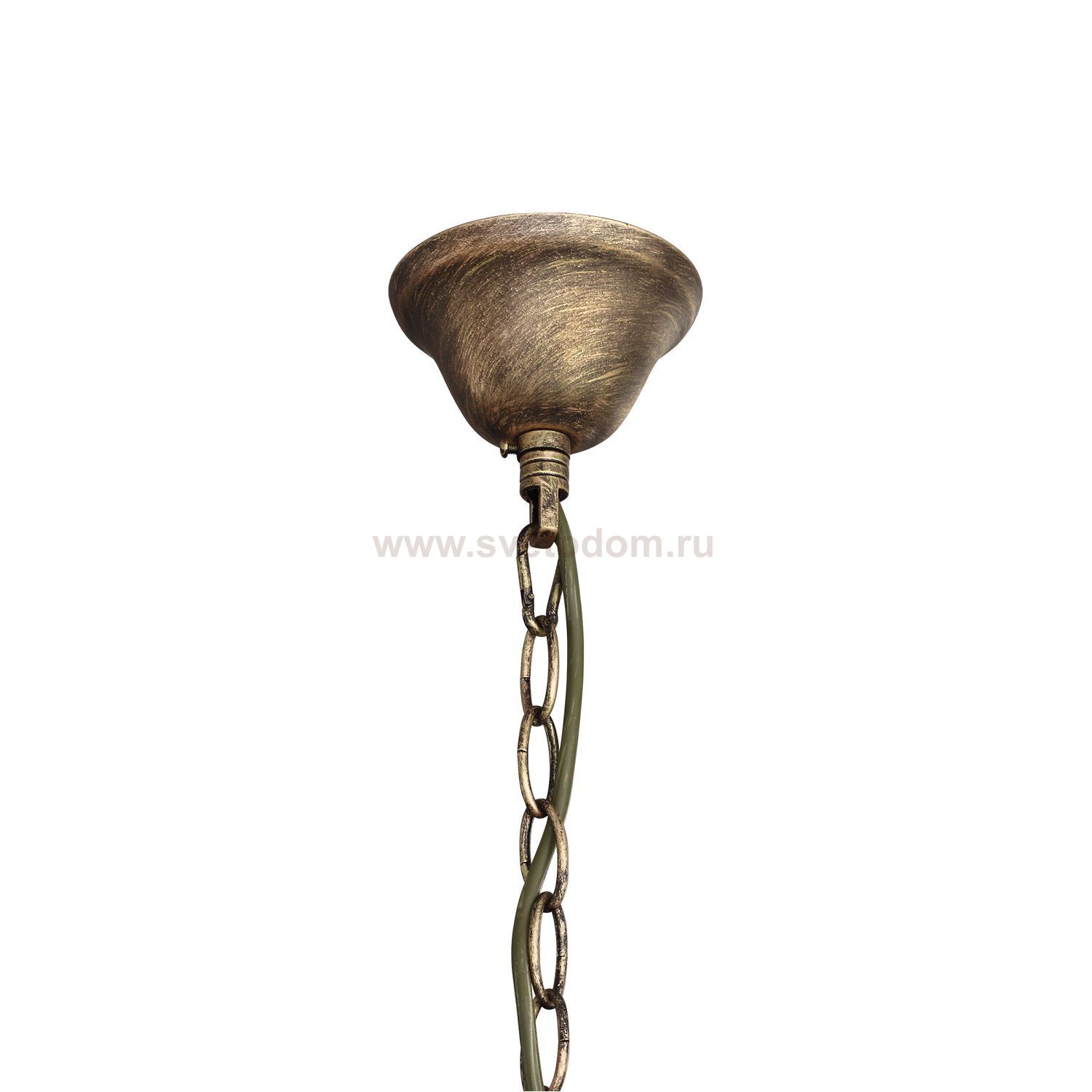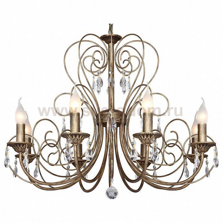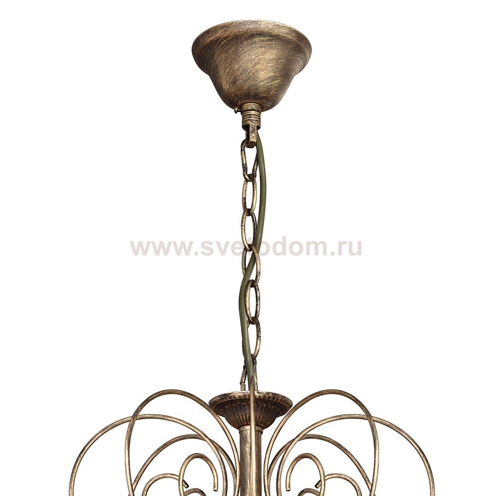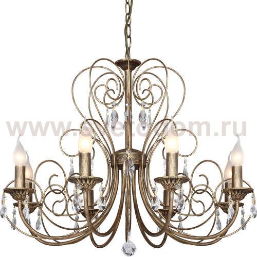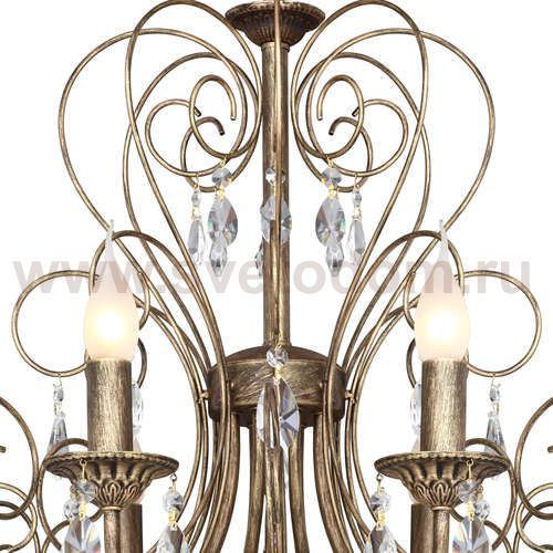 Каркас выполнен в коричневом цвете с золотой патиной в сочетании с хрустальными подвесками высшего качества. Материал плафона