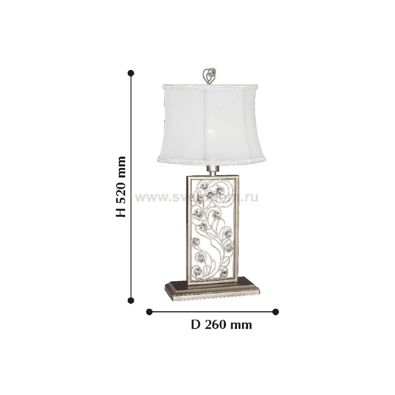 каркас окрашен в цвет античное серебро, абажуры из белой ткани, хрусталь высшего качества Серия