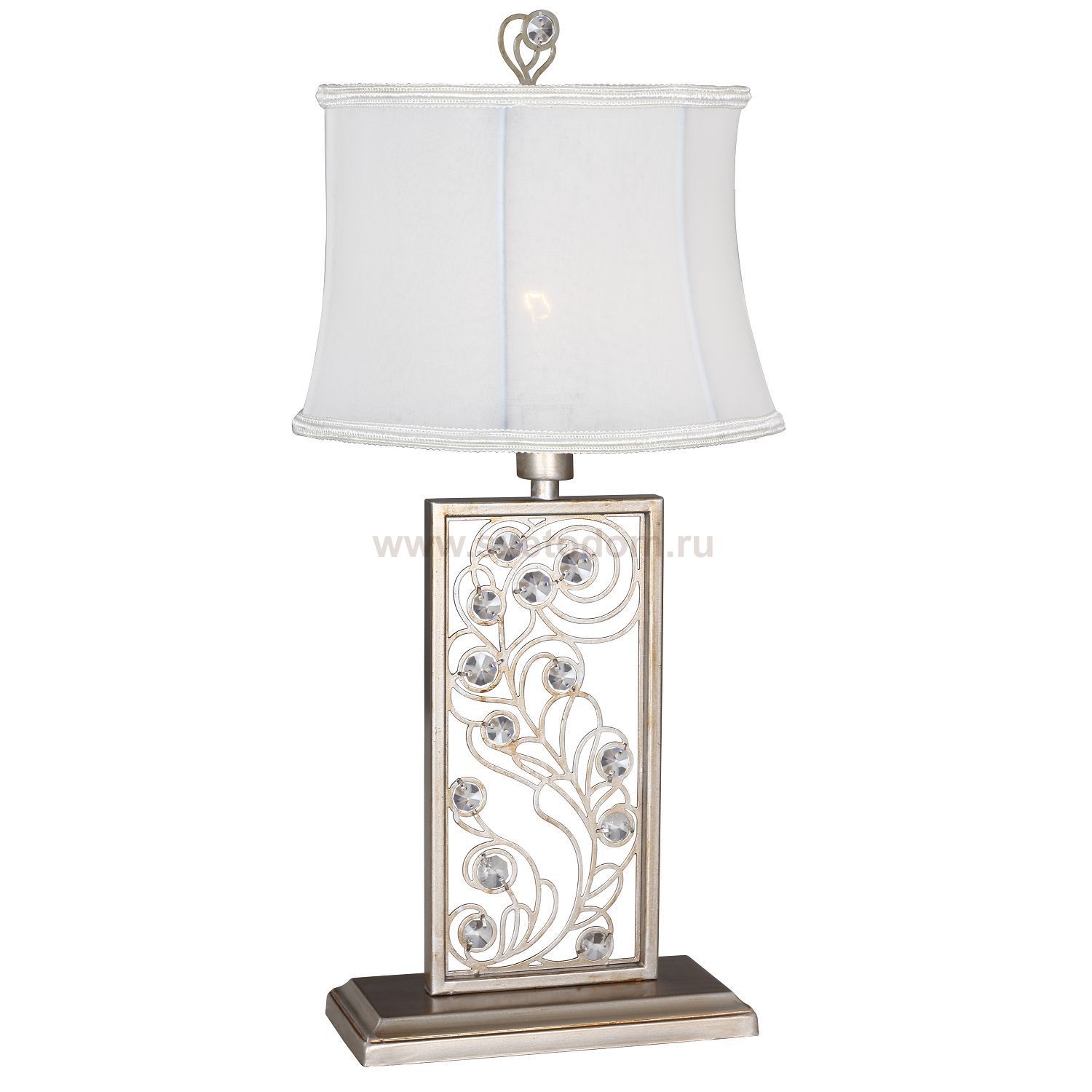 каркас окрашен в цвет античное серебро, абажуры из белой ткани, хрусталь высшего качества Комментарий